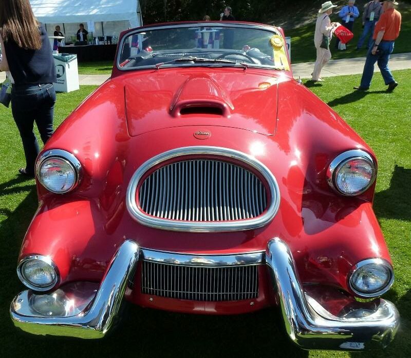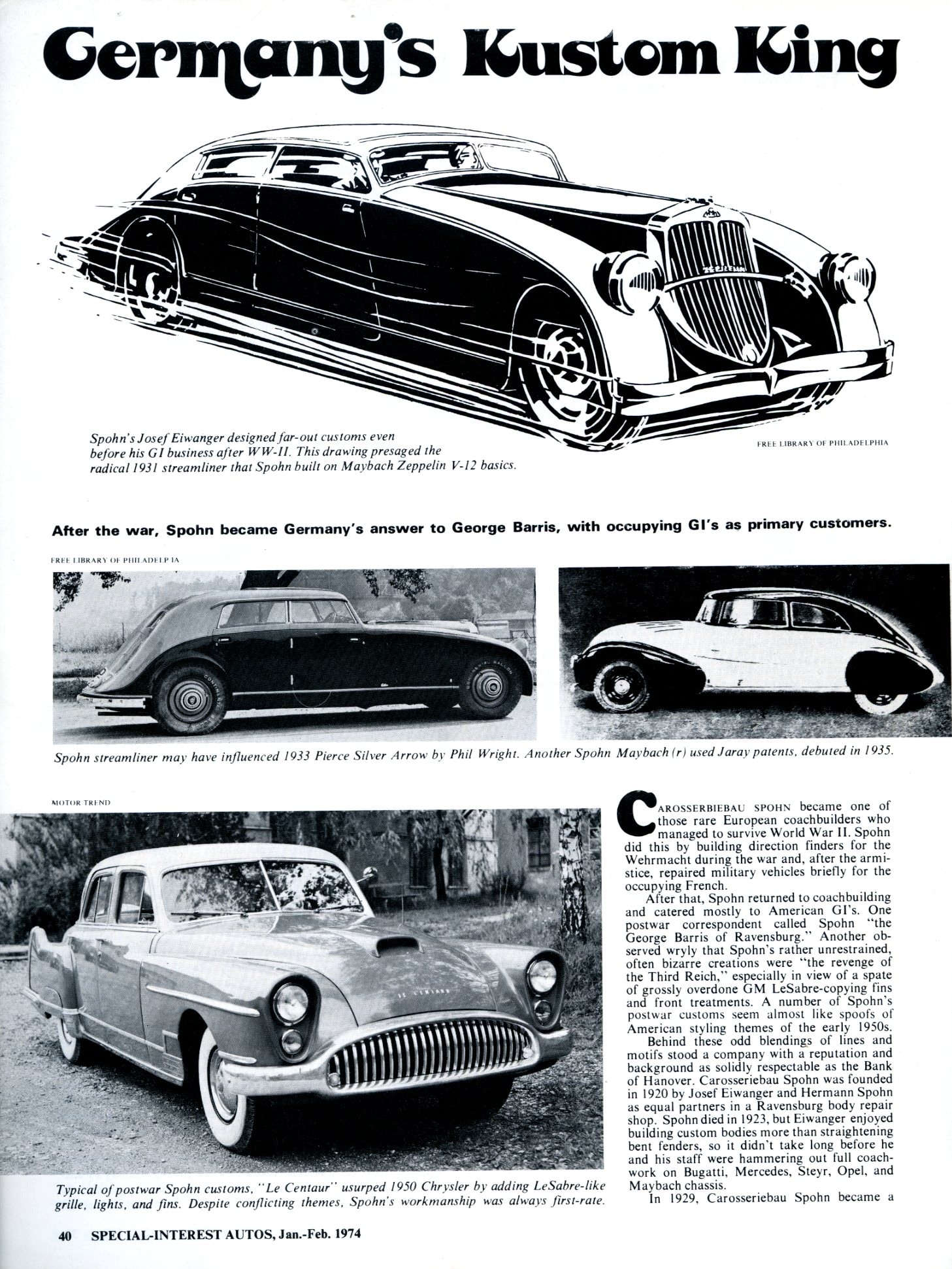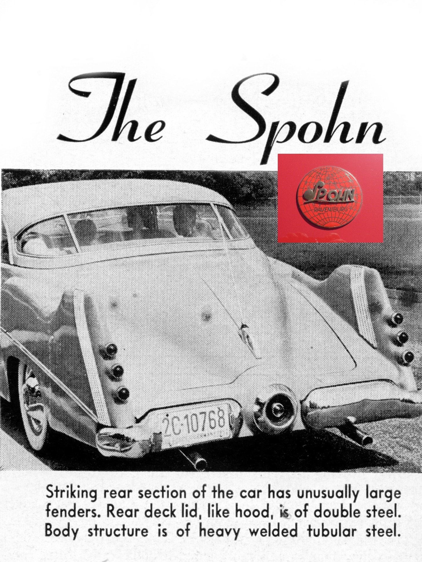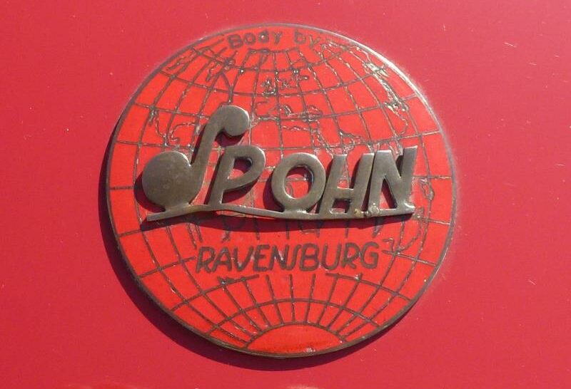Il m’en a donné beaucoup plus (les faits sont prescrits, mais je reste méfiant, les fiscards lisent mes mémoires et notent absolument tout)… J’en reviens à la Spohn qui m’a frappée à Pebble-Beach… A force de tourner autour (d’elle), son propriétaire intrigué par mon attitude, est venu me dire qu’elle avait été construite en 1957, que c’était une décapotable Spohn, l’une des dernières construites (c’est une bonne chose à mon avis), que Spohn était un génie de la carrosserie qui vivait et œuvrait à Ravensburg en Allemagne ou il avait créé quelques carrosseries pour Maybach avant la dernière guerre !