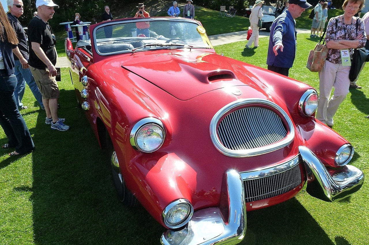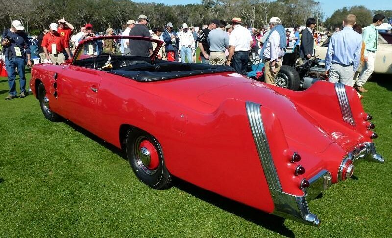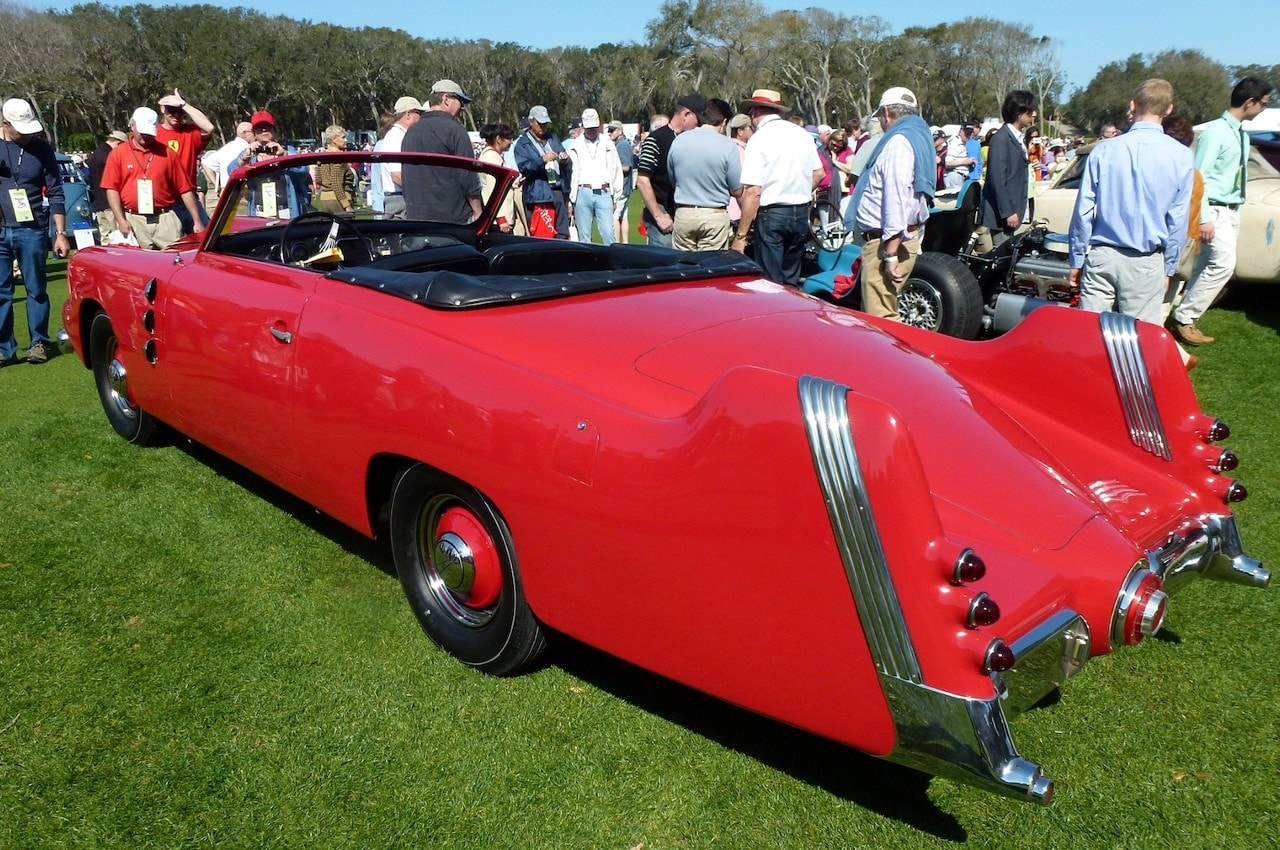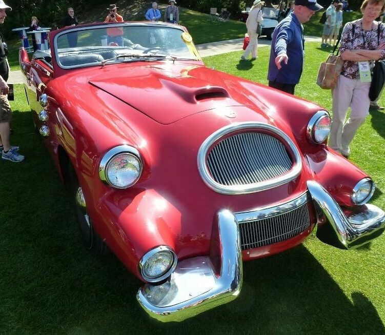 Il m’en a donné beaucoup plus (les faits sont prescrits, mais je reste méfiant, les fiscards lisent mes mémoires et notent absolument tout)… J’en reviens à la Spohn qui m’a frappée à Pebble-Beach… A force de tourner autour (d’elle), son propriétaire intrigué par mon attitude, est venu me dire qu’elle avait été construite en 1957, que c’était une décapotable Spohn, l’une des dernières construites (c’est une bonne chose à mon avis), que Spohn était un génie de la carrosserie qui vivait et œuvrait à Ravensburg en Allemagne ou il avait créé quelques carrosseries pour Maybach avant la dernière guerre !
