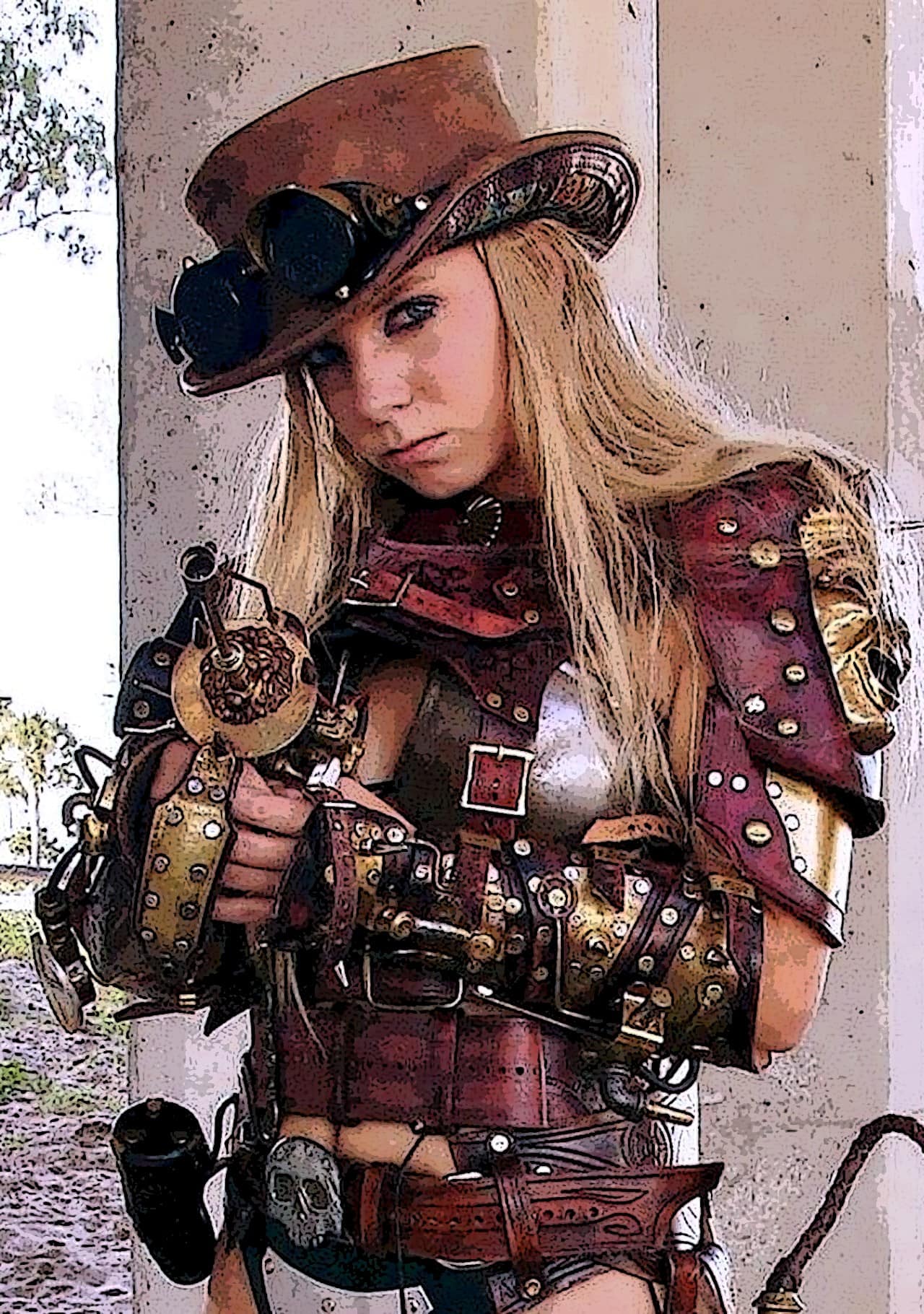 Les Steampunks aiment prétendre qu’ils vivent dans une ère victorienne futuriste avec des touches de cosplay, usant et abusant massivement de sessions multi-joueurs en ligne et de maquillages et coiffures “emo”, c’est comme une overdose sous acide d’une version violée et ravagée d’un roman de Jules Verne…, pour vous en faire une image, pensez au résultat si Mark Twain et Disney auraient eu un beau-fils roux et athée…