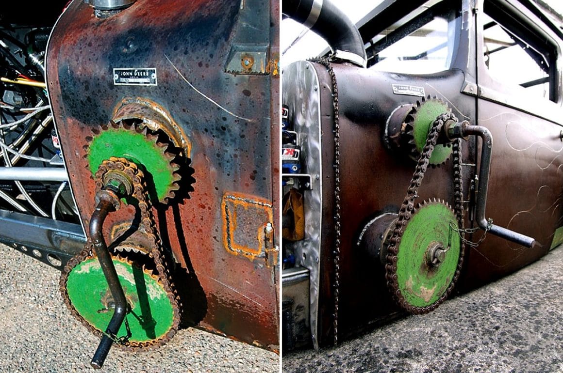 – Il y a tellement de façons qu’on peut construire une carrosserie de Rat-Rod, les possibilités de création sont infinies. Je reçois un nombre infini d’émails orduriers de ploucs qui veulent me faire leur leçon de morale sur les Rat-Rods. Je les emmerde tous. J’ai grandi dans l’industrie sidérurgique, et en plus j’ai l’habitude des gros moteurs diesel et je sais leur faire effectuer des tours de force.