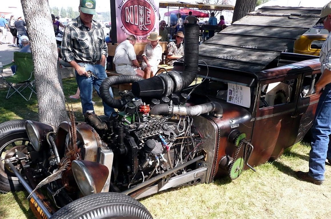 – Les Hot-Rods virent en Rat-Rods et comme c’est de plus en plus dingue, on en est à des Rat-Rods équipés de Cummins Turbo-Diesel de Trucks, en pleine crise ou la pollution est montrée du doigt comme un délit envers l’air pur, ces engins sont en total décalage… et je viens pour tenter de savoir pourquoi ils sont populaires même chez les bronchiteux et ceusses qui souffrent de problèmes respiratoires…