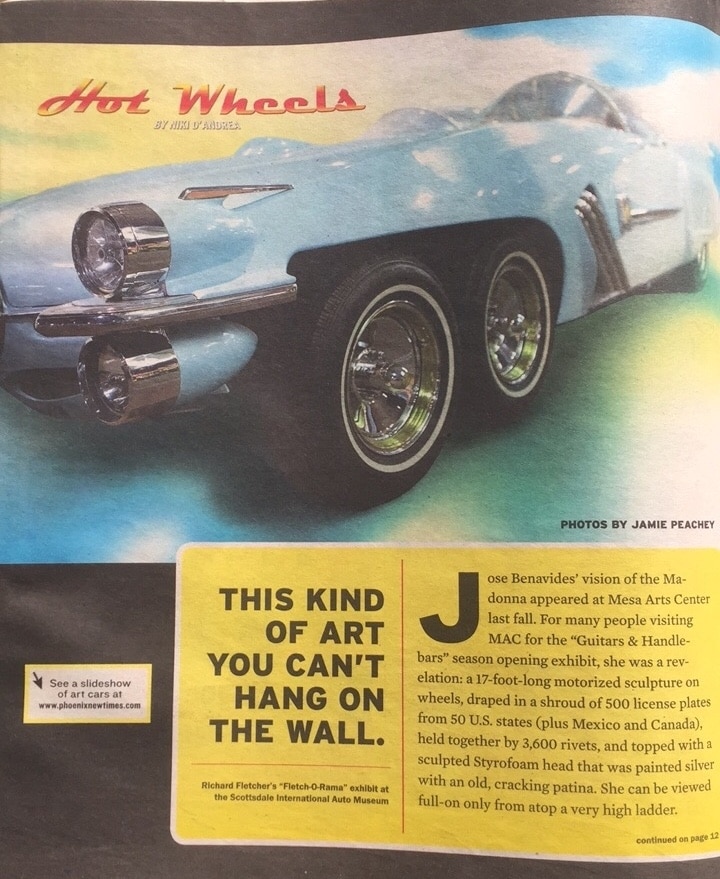 Il fait beaucoup de modelages avec de la mousse et en fusionnant ensemble différents morceaux de voitures…, ses constructions prennent de un à six mois de travail…, depuis 1999, il a construit huit voitures, trois de ces voitures, The Pirate Surfmobile , The Ice Princess et The Gothic Coach, sont exposées au Musée Auto Scottsdale de Phoenix…. mais personne n’en veut, personne n’achète…