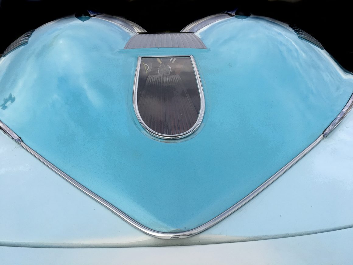 – Je suis lunaire, je crée au moment ou la lune est encore visible dans le ciel en plein jour, un moment ou on ne sait plus si c’est le matin qui se lève ou le soir qui se couche, entre le passage des brumes de l’esprit et de la clarté aveuglante du soleil. C’est ainsi que j’ai trouvé l’inspiration au delà de tout ce qu’il était possible d’espérer, c’est incroyable, c’est d’ailleurs cela qui m’a décidé de transformer une Studebaker 1950 Sedan 2 portes.