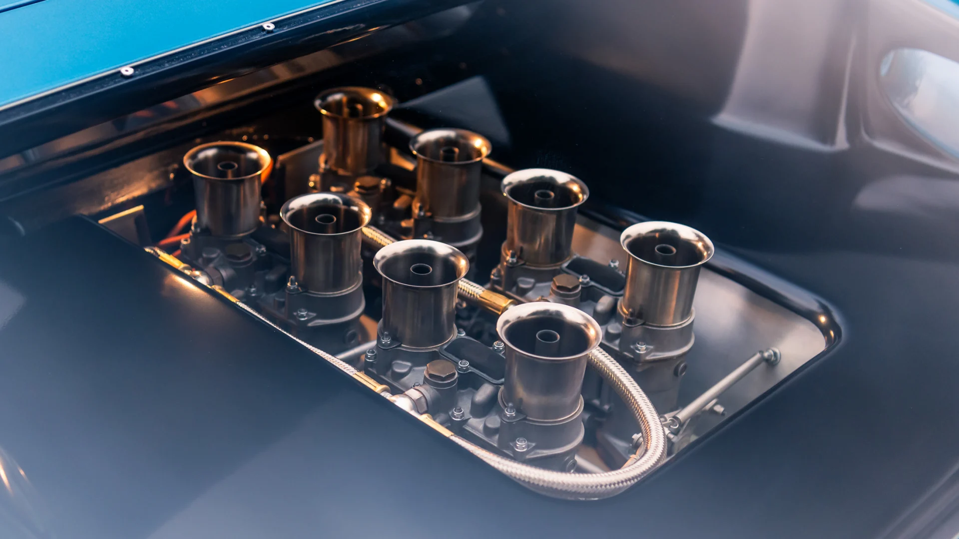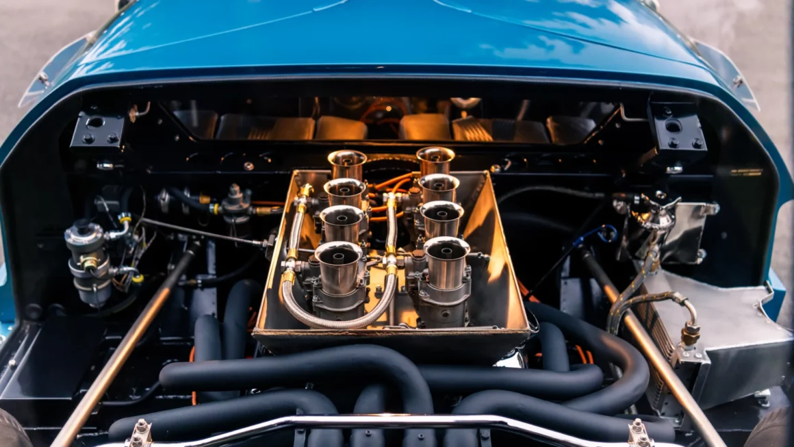 Tout ce que vous pouvez vraiment voir dans le rétroviseur, ce sont les huit trompettes d’admission. Les versions routières ont gagné des tapis et d’autres garnitures, mais ont conservé la sensation des coureurs grâce à des touches telles que le levier de vitesses droit. La première vitesse est bonne pour la meilleure partie des premiers 60 mph, et même dans les soi-disantes spécifications routières, ses manières sont indéniablement celles d’une pute. Comme on pouvait s’y attendre, la conduite est ferme, la direction directe et aucun retour d’information n’est émoussé le moins du monde.