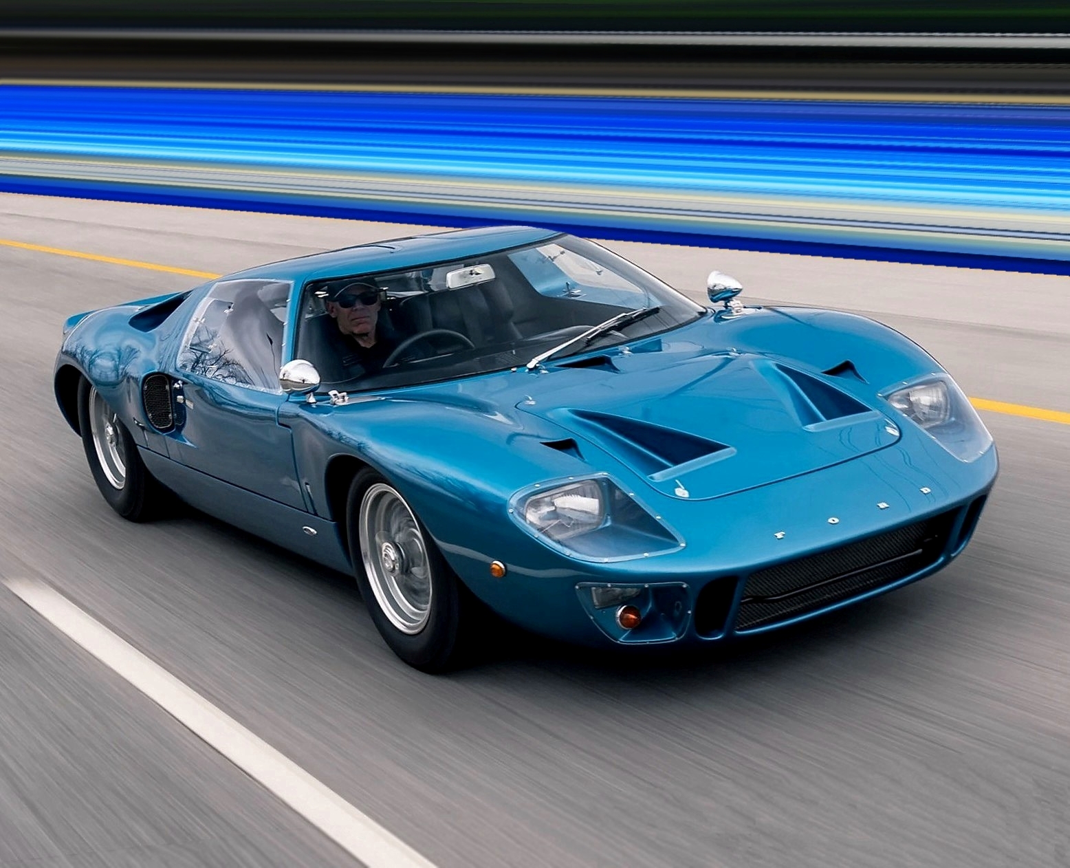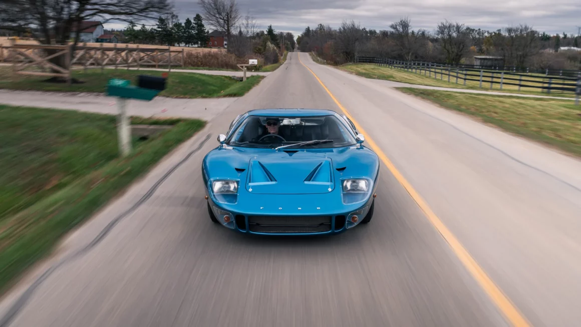 Il aurait fallu que cet “essai” se déroule dans les villes Britanniques ou furent construites les GT40 “Street version” dans les années 1960 et 70 : Betjeman et Brent étant alors (années ’60) au cœur du sport automobile, Lola, Surtees, Frank Williams et Winkelmann Racing y étaient tous basés. L’histoire raconte que Jochen Rindt sortait de la M4 à la jonction sept et glissait régulièrement sur la bretelle d’accès à 270º… C’était donc en Angleterre que Ford Advanced Vehicles à construit cette GT40 châssis 1059 en novembre 1966. Elle a été expédiée aux États-Unis le 23 décembre avec six autres GT40 “Street versions”.