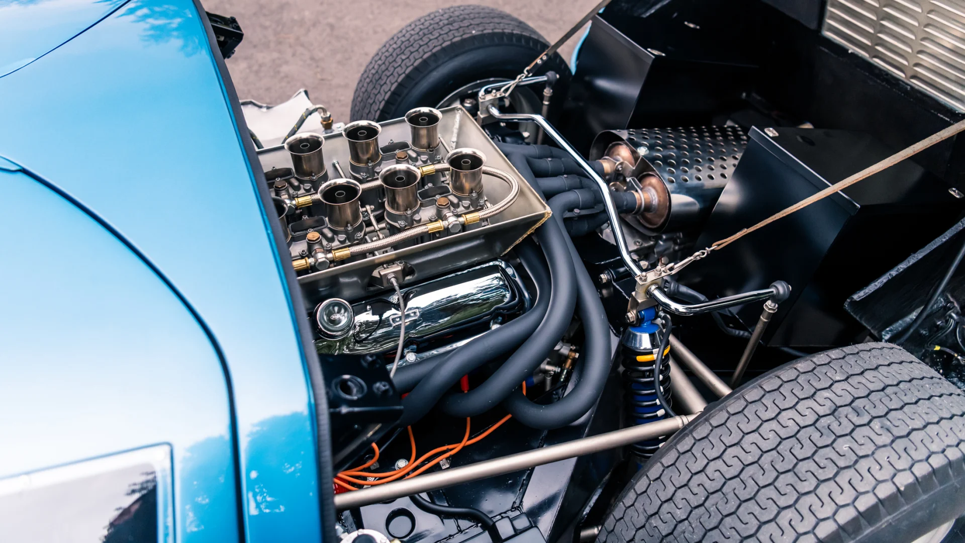 Tournez la clé, poussez le démarreur vers le bas dans le tunnel central et, d’une simple pression sur l’accélérateur, le V8 s’anime juste derrière vos épaules dans un vacarme apocalyptique. La boîte de vitesses à cinq rapports est dotée d’un dogleg, avec un verrouillage pour la marche arrière juste au-dessus. Relâchez le lourd embrayage et la GT40 s’éloigne d’elle-même du monde civilisé, grondant dans la circulation. Après seulement quelques centaines de mètres, vous vous rendez compte que vous commencez à avoir très chaud, ce qui n’est pas une grande surprise lorsqu’on s’approche de l’enfer…