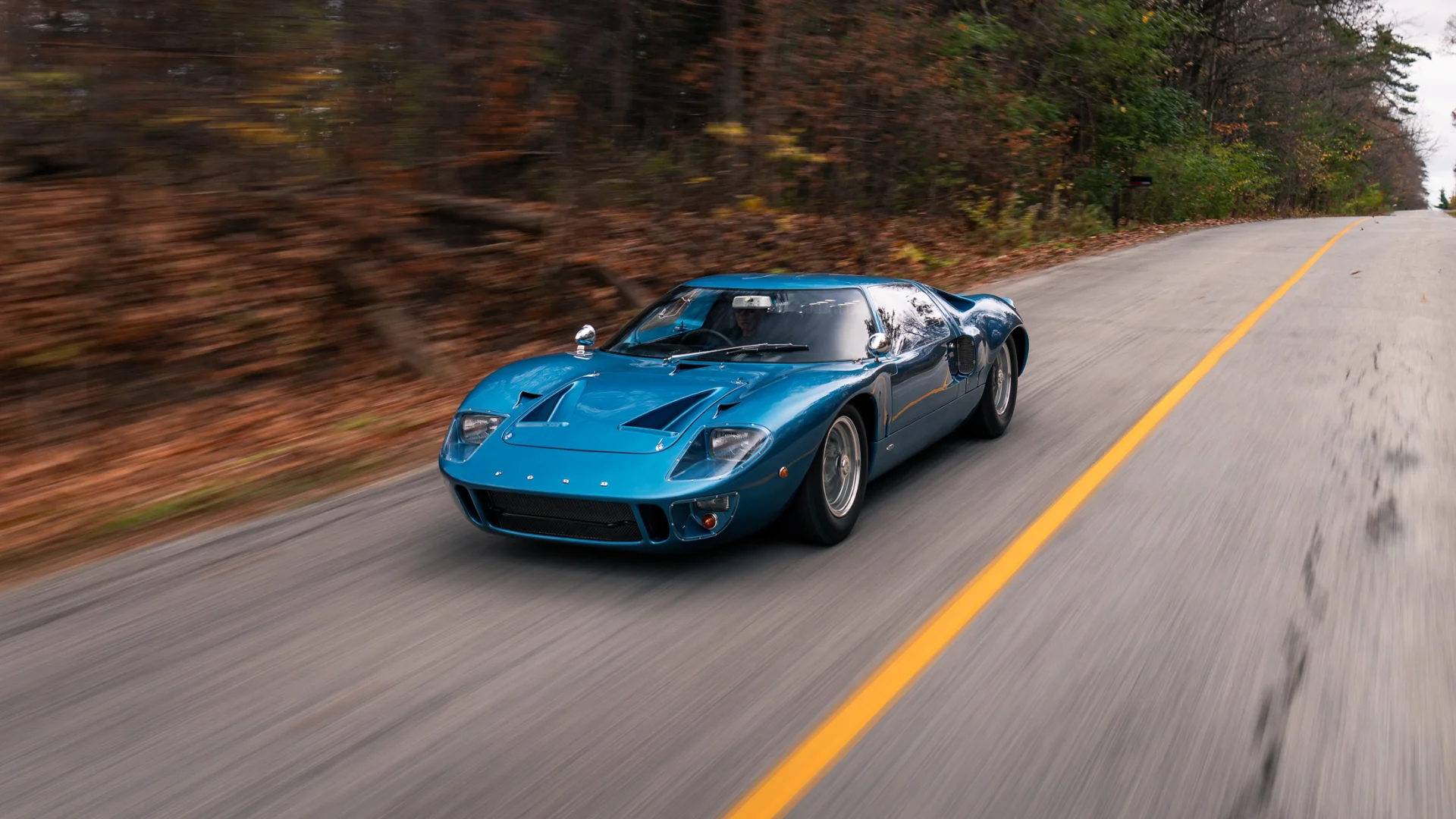 Des chauffeurs routiers se sont penchés de leur cabine et m’ont proposé d’échanger, des écoliers ont sauté en l’air en poussant des cris. Je me suis senti assez courageux pour pousser l’accélérateur à long débattement un peu plus loin. La boîte ZF à cinq vitesses était conçue pour 60 mph en bas et 95 en seconde. Sur cette route grasse, j’ai découvert qu’avec des pneus de course à l’avant et à l’arrière, l’adhérence était rare. La GT40 glissait en tous sens, les gens de Mecum paniquaient et faisaient des appels de phares… Je n’étais absolument pas heureux d’être là pour évaluer cette machine infernale…