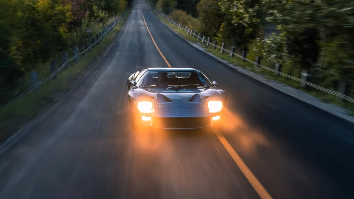 Surtout à ce que tout le monde s’arrête et regarde… Que les passagers des voitures à proximité prennent des photos… Que les conducteurs de chaudasses sportives déboulent aux feux de circulation et fassent vrombir leur moteur de manière a encourager un départ arrêté infernal… L’intrépide et talentueux conducteur d’une GT40 “Street version” doit également être conscient que, le manque de hauteur de la voiture est tel, quelle n’apparait pas dans le rétroviseur des gens… Être trop directement derrière toute automobile est en GT40 générateur de stress, de problèmes et d’accidents potentiels…