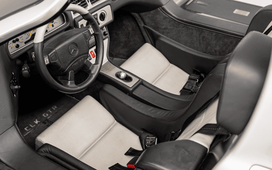 D’autres révisions comprenaient des rétroviseurs montés sur les portes, des tringles-roues intégrés derrière les sièges, et une nouvelle grille avant et une aile arrière. En tant que version ouverte extrêmement rare de la Supercar de la marque FIA GT Championship de la fin des années 1990, la CLK GTR Roadster peut être considérée comme le sommet de la production du modèle, cimentant le statut de la voiture en tant qu’apogée de la conception de voitures de sport du XXe siècle. Cette CLK GTR Roadster magnifiquement entretenue bénéficie d’une très minimale utilisation et d’entretiens sans limites par des techniciens Mercedes certifiés. La voiture vedette de cet article est la troisième des six Roadsters construits, et est finie en argent sur un intérieur en cuir noir et gris. Au début des années 2010, la voiture avait été importée aux États-Unis et a été fédéralisée pour être conforme aux normes d’émission des États-Unis (autres que l’État de Californie qui a refusé). Il convient de noter que les soumissionnaires américains devront réenregistrer la voiture auprès du ministère des Transports des États-Unis en tant que véhicule d’exposition uniquement. Ce qui est frustrant et démontre la totale inutilité du bestiau qui ne sera plus qu’une sculpture…
