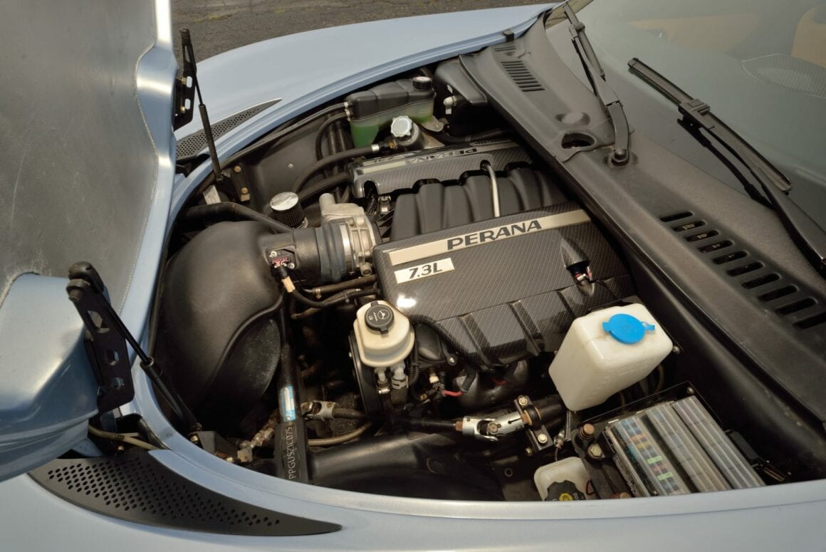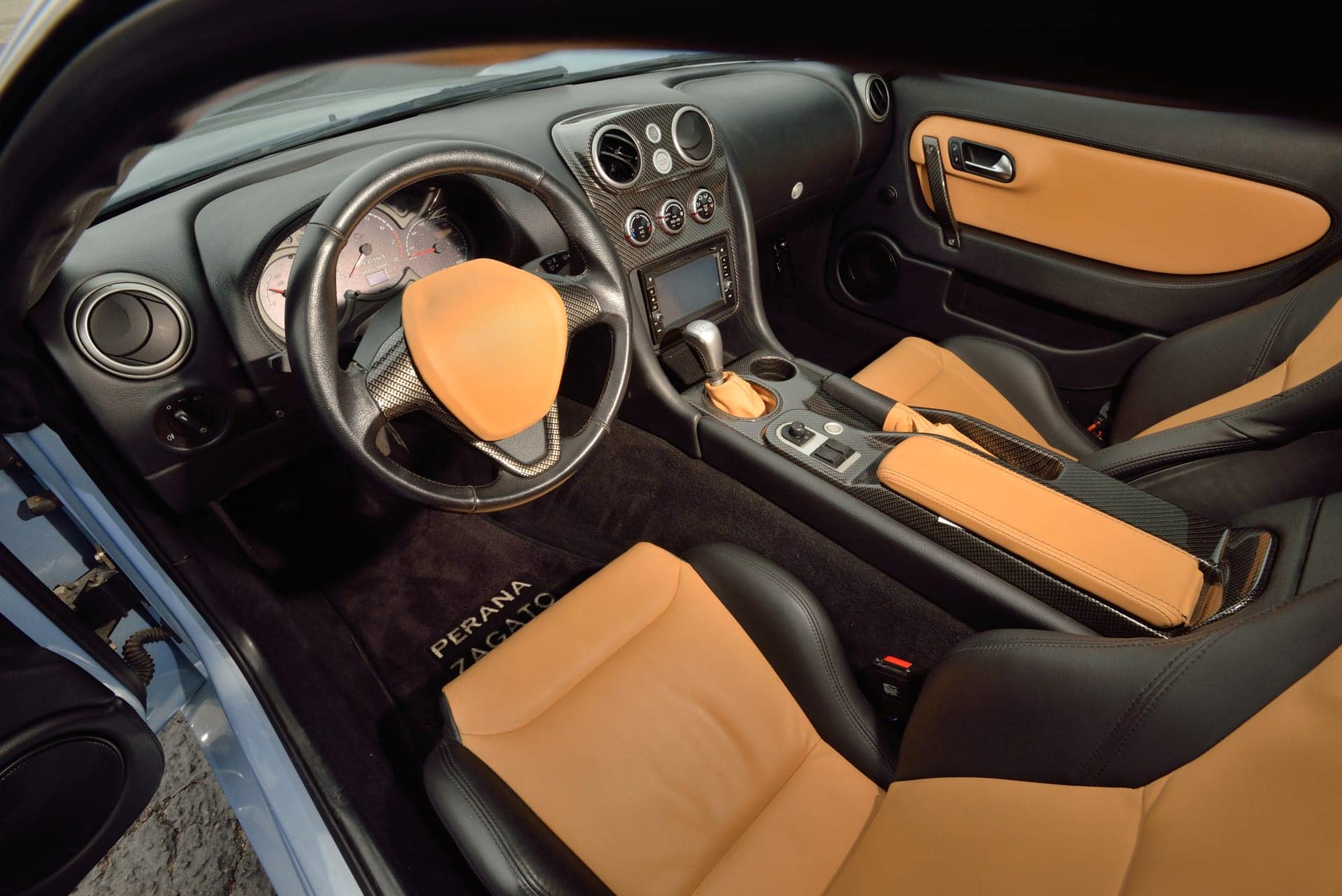 C’est une des deux construites avec le V8 7.3L/600cv LS7, Boite manuelle 6 rapports… et c’est l’une des seules sept fabriquées et livrées aux USA. Zagato est peut-être mieux connu pour ses collaborations avec Aston Martin, mais ce ne sont pas les seules automobiles auxquelles le carrossier milanais a appliqué son style et apposé sa signature. Il a conçu la Perana Z-One, dont seulement moins d’une douzaine ont été fabriquées.