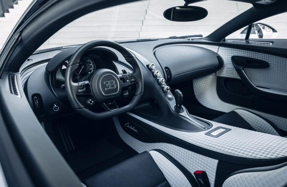 Les seuils de porte façon glacier Suisse valent également le détour. Bref, cette Bugatti a été livrée en septembre 2022 et s’est immédiatement refusée à démarrer… Malgré de vains efforts spermettant de réaliser les 437kms indiqués au compteur, trop frayeuse et toujours en panne elle n’a fait l’objet que d’une conduite minimale “dite de salon” pendant sa seule possession, ce qui correspond au kilométrage incroyablement bas de 437 kilomètres.