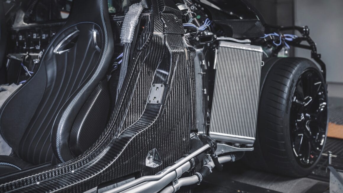 Si ce n’est que Xavier deLaChapelle badgeait ses Réplicar’s du logo Bugatti. Rien d’authentique donc. Dans le cas de cette Centodieci, tout était repris (on dit étroitement dérivés pour faire chic) de la Chiron, avec le même moteur W-16 de 8.000cc “quadriturbocompressé”, développant soi-disant 1.600cv de même façon que les trucages VW, sans doute les mêmes algorithmes sur-révisés pour une maniabilité plus dynamique (sic !).