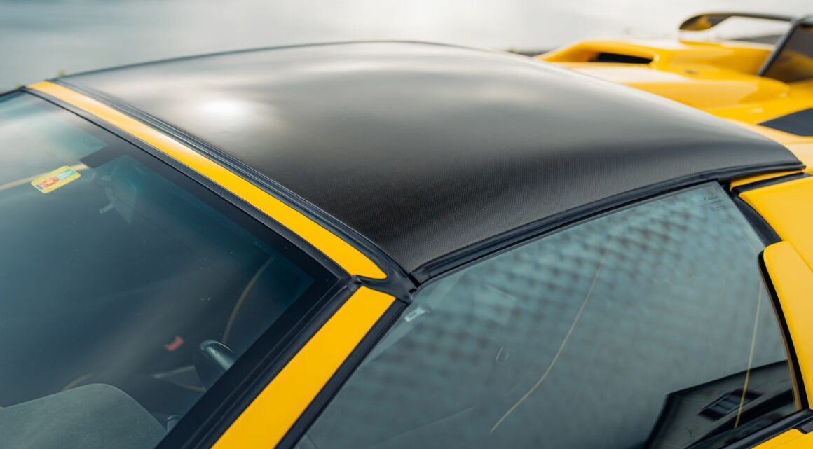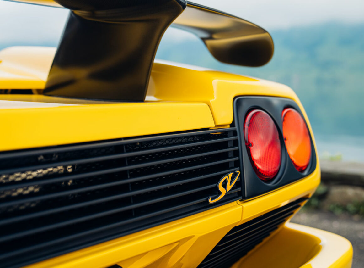 La console centrale et les bas de caisse ont été spécifiés dans une fibre de carbone apparente au fini mat, tout comme le toit amovible, l’énorme aileron arrière et les lames d’admission d’air latérales (des caractéristiques entièrement uniques à ce châssis) tandis que le système de levage de la suspension avant a également été ajouté. Mais ce qui rendait la voiture vraiment spéciale, c’était sa spécification d’usine SV, partageant le même pare-chocs avant…