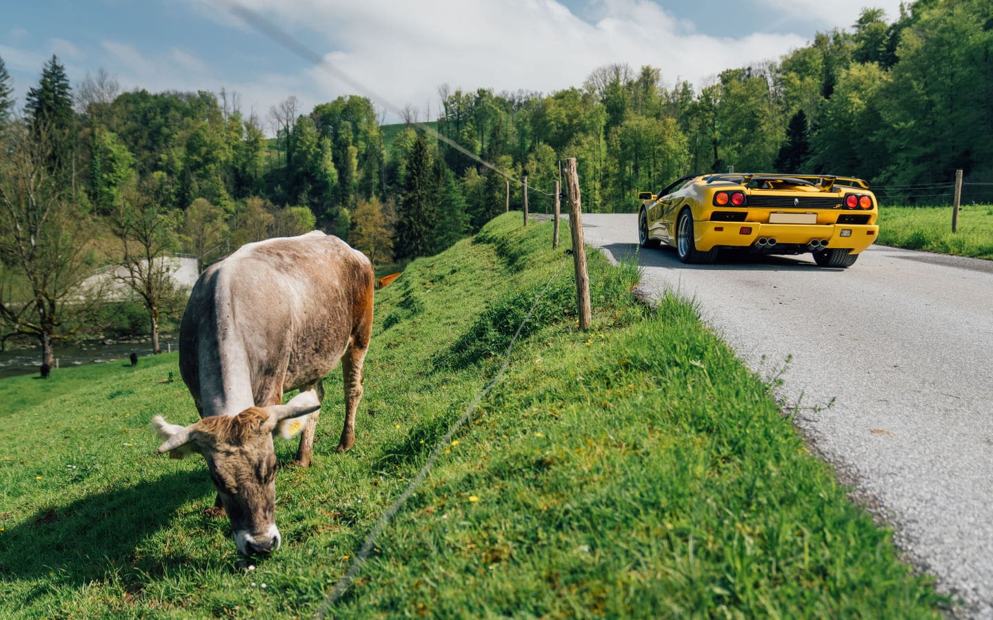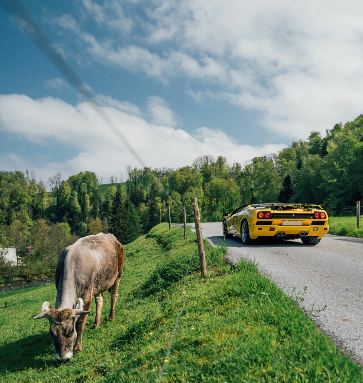 Egalement les surprises inattendues et les envolées de fantaisie. Sauvage et indompté. Tout comme la vie elle-même. Lorsque notre super super super test avec cette Lamborghini Diablo est devenu totalement sauvage et incontrôlable, je me suisse dit que c’était comme un chocolat suisse, une bonne chose qu’il existe des véhicules aussi fiables et luxueux qu’une Toyota Corolla, qu’une Renault Fuego, qu’une Citroën Visa, qu’une Zastava, qu’une Lada et une Zorky …