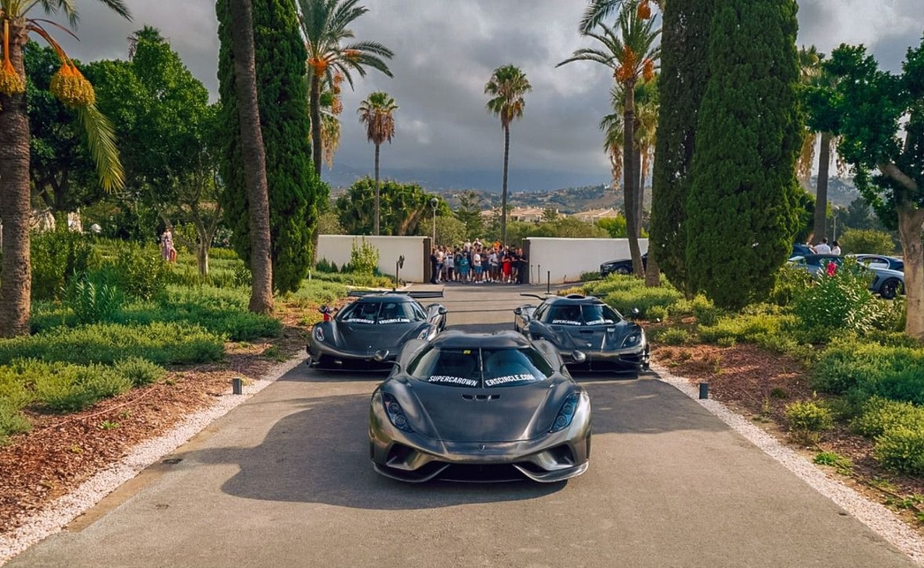 L’intérieur de la voiture était, selon ses instructions de propriétaire, décoré de cuir orange vif. Le coloris a suscité des commentaires admiratifs de la part de nombreux autres pilotes de la SOC. (Le schéma violet et orange m’a rappelé une robe que Scarlett porte dans ‘Quatre mariages et un enterrement’ ; le propriétaire de la Regera ne se souvenait pas de cette partie du film)… Le convoi est entré dans les montagnes. La Méditerranée scintillait sous nos pieds. La plupart des routes étaient des autoroutes à deux voies et il y avait peu d’occasions de tester la puissance de la Regera, car les conducteurs réguliers bloquaient le passage. De temps en temps, nous accélérions avec une facilité effrayante pour dépasser une autre voiture. Lors d’un court dépassement en montée, j’ai remarqué que le compteur de vitesse atteignait 220 kilomètres à l’heure… Lors du briefing matinal à La Zambra, un pilote de course espagnol qui avait été embauché comme conseiller pour le week-end a expliqué aux participants à quoi s’attendre de la part de la police de la circulation locale.