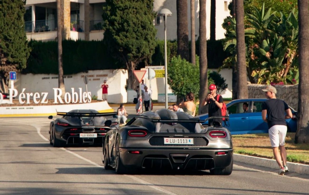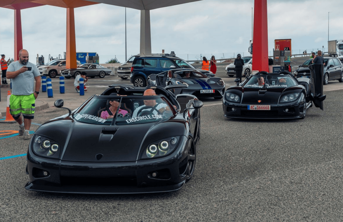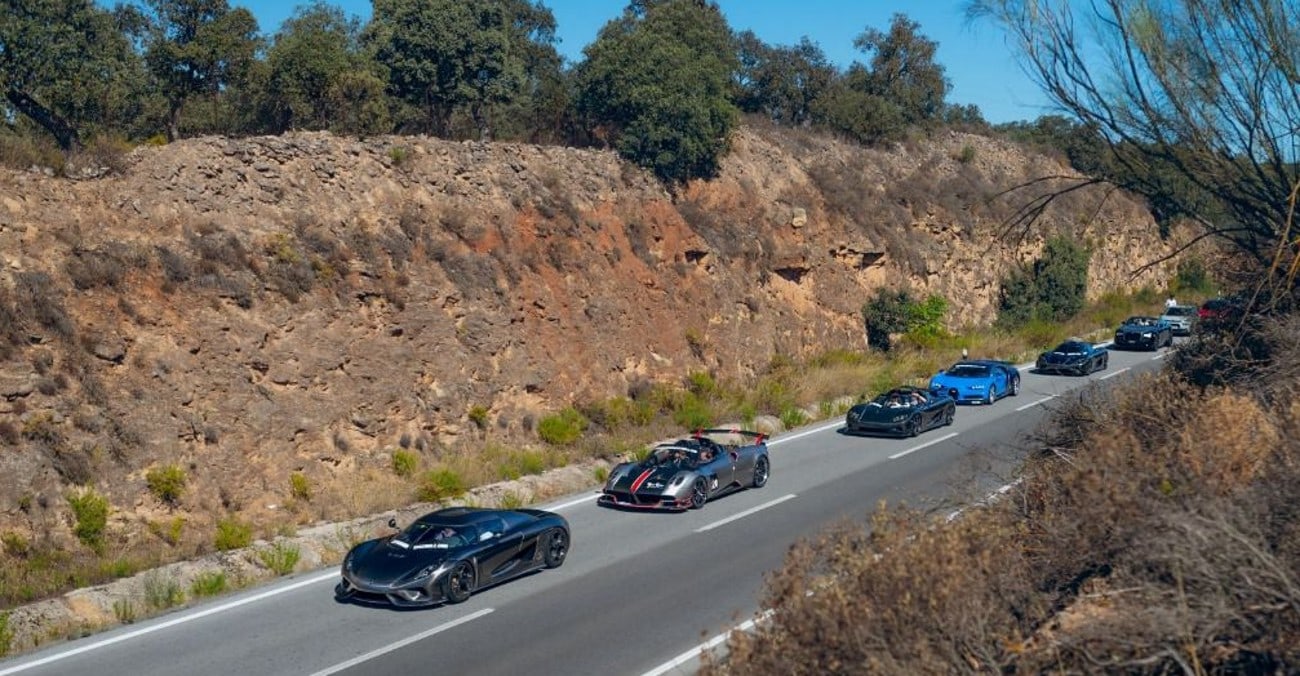 Le message implicite était qu’une entente avait été conclue : “Nous n’avons pas de problème, mais ne faites pas de choses folles”… Sur la route du matin, l’accord en place semblait tenir : aucune Hypercar n’a reçu de contravention pour excès de vitesse. Sur une bretelle d’accès, j’ai repéré une Fiat Uno qui avait été arrêtée par une voiture de police. Son propriétaire regardait avec tristesse le convoi de la S.O.C. qui passait en rugissant. J’ai demandé au propriétaire de la Regera s’il savait quelle était la limite de vitesse espagnole. : “Pas de putain d’idée” a-t-il dit… Plus tard ce matin-là, un véhicule de police est apparu peu de temps après que le propriétaire de la Regera ait fait ce que l’on pourrait appeler une chose folle : dépasser une autre voiture sur une route à deux voies, avec un trafic venant de l’autre sens assez rapidement pour que j’oublie momentanément de respirer : “C’était facile”, m’a-t-il rassuré. Puis il m’a demandé si je parlais espagnol, afin que je puisse parler avec aisance aux officiers locaux s’ils nous arrêtaient.