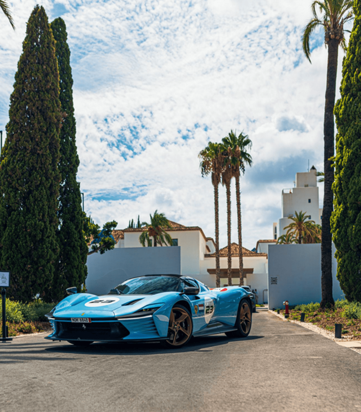 Plus notre convoi s’éloignait de La Zambra, plus les voitures de notre groupe devenaient audacieuses. Une Ferrari Daytona SP3 bleu ciel nous a contournés. J’ai appris plus tard que la voiture appartenait à un magnat de l’immobilier néerlandais ayant des opinions conservatrices sur la détermination de la peine pénale : “Pour certaines personnes ici, c’est un concours de mesure de bite”, m’a déclaré le propriétaire de la Regera, me précisant qu’il n’avait jamais vu l’attrait de posséder une Ferrari. Les voitures elles-mêmes étaient belles, mais il n’aimait pas l’entreprise, qui obligeait les clients à acheter plusieurs Ferrari de moindre valeur avant même qu’elles ne puissent être considérées pour des modèles plus exclusifs… Pointant du doigt la Daytona SP3, il m’a dit : “Vous auriez besoin d’un historique d’achat de trente millions de dollars pour acheter cette voiture”… Nous nous sommes arrêtés dans un hippodrome privé, qui avait été loué pour quelques heures par le S.O.C. Les organisateurs voulaient que les voitures effectuent un tour de piste tranquille.