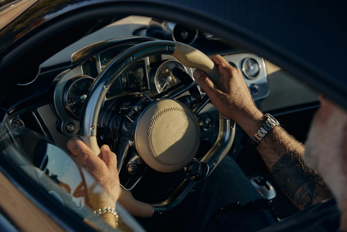 Ces fabricants offrent des avantages, mais vous n’êtes pas en train de faire un voyage en voiture avec le PDG ou de compter les chefs de l’ingénierie parmi vos copains de boisson. Pagani offre une voiture construite à la main et un lien avec les artisans qui l’ont fabriquée. Les engrenages visibles intégrés au tachymètre et au compteur de vitesse créent une illusion convaincante de mouvement mécanique pur. Sur une piste, je doute que l’Utopia montre ses feux arrière à une McLaren 750S ou à une Ferrari 296 GTB, des voitures qui commandent des fractions de l’autocollant de l’Utopia. Les performances supplémentaires de l’Utopia, l’expérience de conduite réelle, sont-elles plusieurs fois meilleures que celles de ces voitures ? Pas vraiment. Différent, mais pas mieux. De nos jours, toute augmentation perceptible des performances des supercars dépasse la barre du demi-million de dollars. Les dépenses supplémentaires vont aux absurdités aux yeux écarquillés, l’équivalent automobile d’une piscine sur le toit ou d’un Banksy dans votre salle de bain. Une utopie est certainement intéressante à regarder et à vivre à un niveau superficiel, mais elle devient beaucoup plus intéressante une fois que vous apprenez ce qu’il faut pour construire l’une de ces voitures, de la personne qui l’a réellement faite, autour d’un champagne, dans un chalet, à la fin d’un trajet de quatre heures à travers les Alpes avec deux puputes en attentes. Chacune ayant une histoire à raconter et une spécialité à proposer, ce qui est encore plus intéressant que la voiture.
