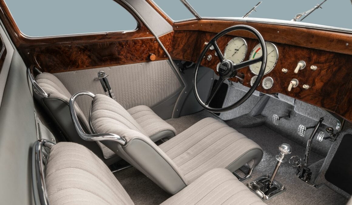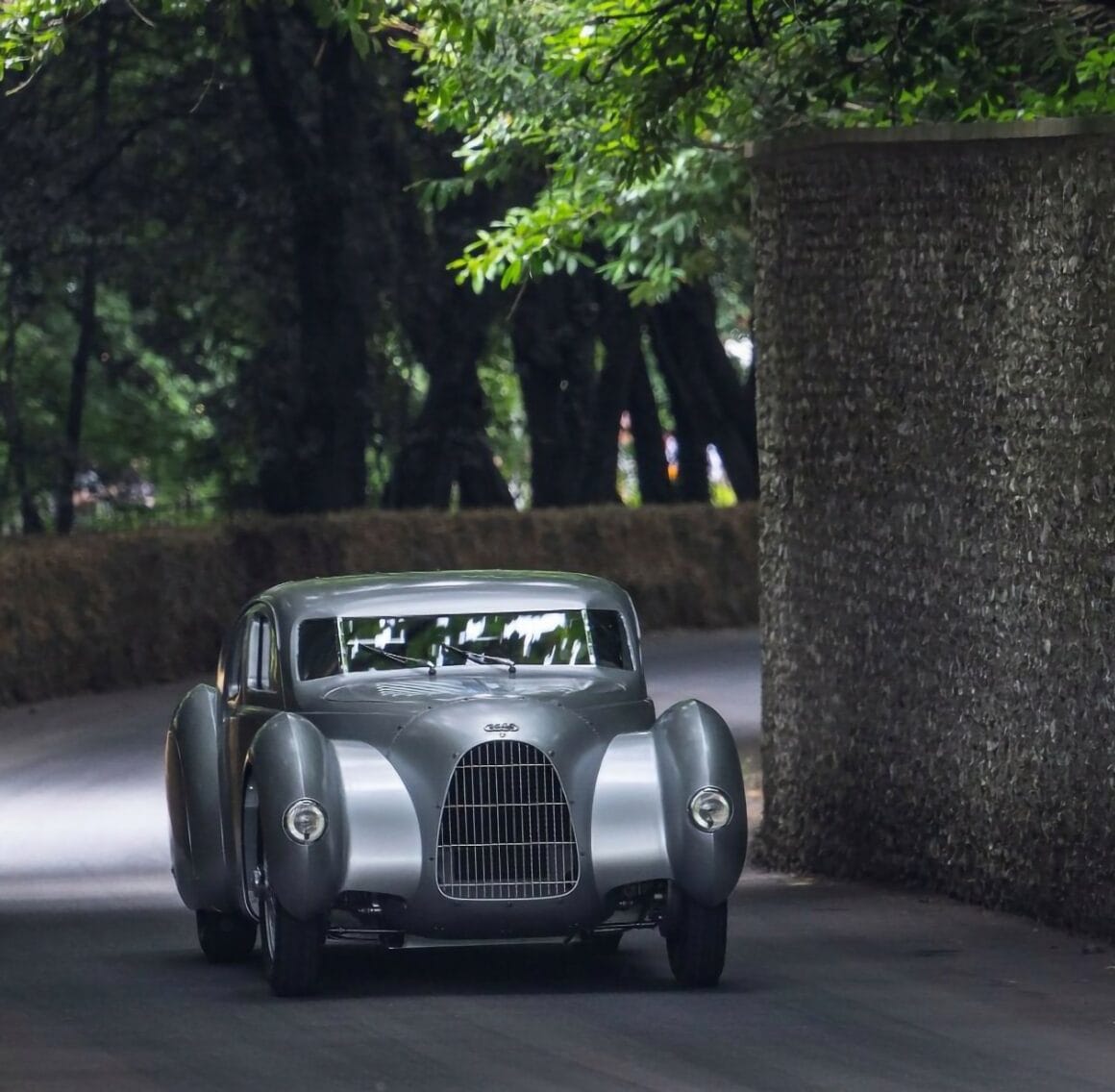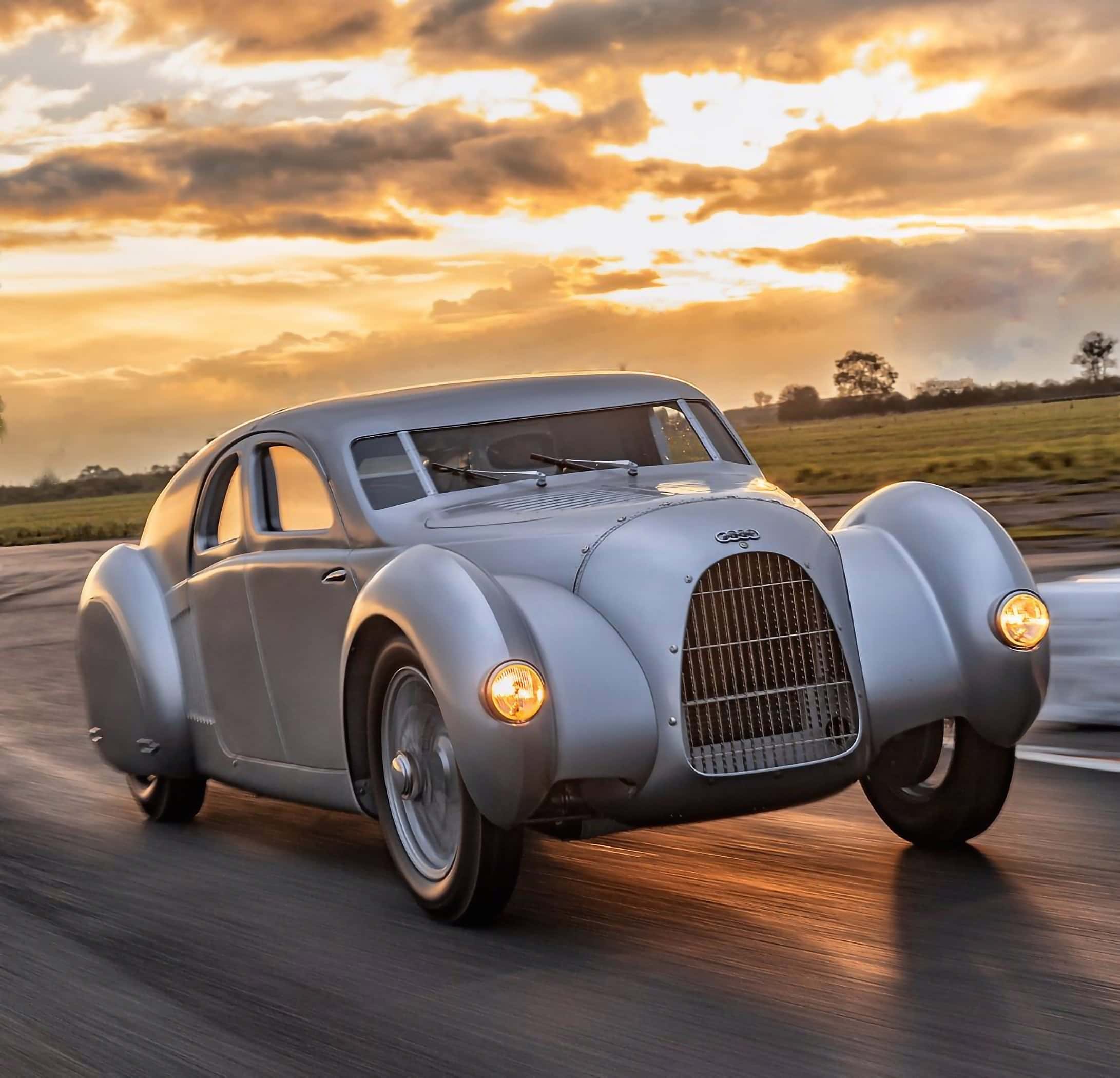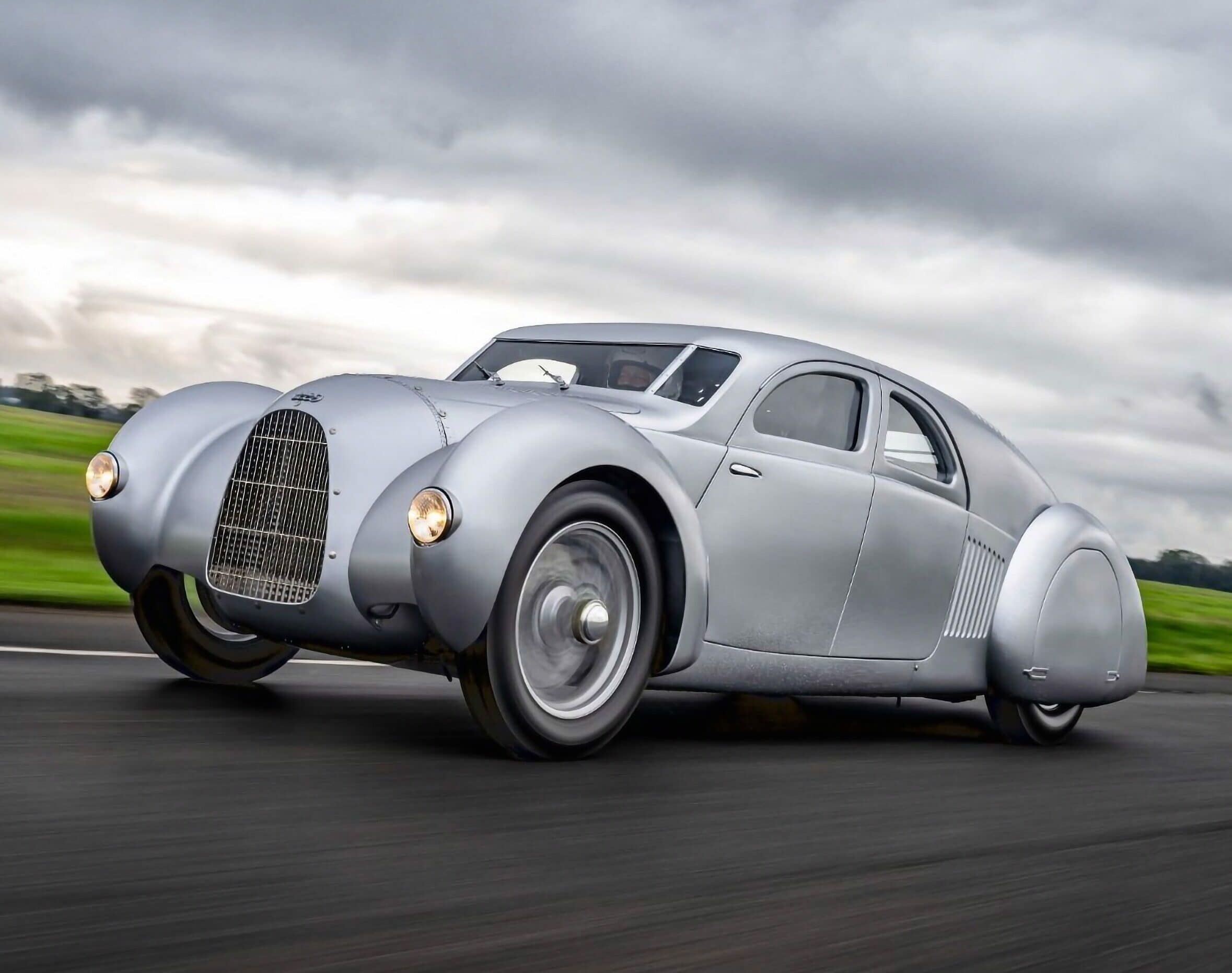 Pour la magnifique carrosserie de forme aérodynamique, les experts de Crosthwaite & Gardiner ont suivi les croquis originaux dans presque tous les détails. La seule chose qu’ils ont changée était la longueur de la structure, qui devait correspondre aux dimensions du nouvel empattement. À l’intérieur, la Type 52 a reçu la même configuration de cockpit conçue par Ferdinand Porsche et les ingénieurs de l’Auto Union dans les années 1930. Bien que des tissus modernes et des garnitures en grain de bois aient été utilisés, le style original de chaque élément et la configuration des sièges ont été conservés. À ce propos, l’intérieur a été conçu avec le siège du conducteur et le volant montés en position centrale et flanqués de deux sièges passagers légèrement décalés. La même configuration, dessinée dans les années 1930, a été utilisée par McLaren plus d’un demi-siècle plus tard pour le cockpit de la légendaire F1. Bugatti a fait parler de lui il y a quelques mois en dévoilant sa dernière hypercar, baptisée Tourbillon, qui abandonnait la vénérable W16 quadriturbo …