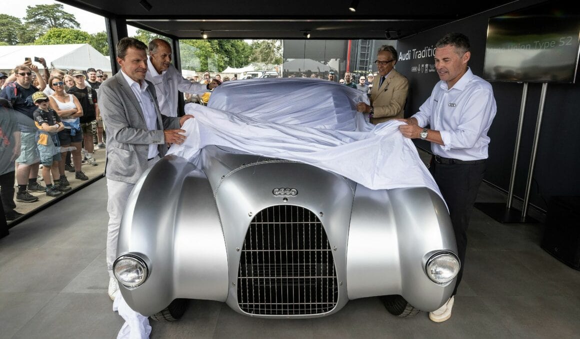 C’était ce qui était garanti pour aider l’Audi Type 52 à atteindre l’objectif initial de vitesse de pointe de 200 mph (322 km/h). Le projet ambitieux de créer une Star de la route au départ d’un projet mort-né vieux de 90 ans, en une véritable voiture fonctionnelle est maintenant achevé. Audi a passé environ un an à tester et à peaufiner le prototype et l’a présenté au monde entier sur le site officiel de l’entreprise le mois dernier. Les passionnés qui ont assisté au Goodwood Festival of Speed ont également pu y voir l’impressionnante automobile classique de construction contemporaine durant plusieurs heures. Avec les pilotes de course légendaires Tom Kristensen et Hans-Joachim Stuck qui se relayaient au volant, la fantastique Schnellsportwagen a fait ses premiers tours officiels devant le public, médusé… Comment croire que cette étrange chose puisse devenir le nouveau haut de gamme Audi ? Certains croient en une plaisanterie décalée, à un gag, d’autres hurlent que c’est une fumisterie… Et vous ?