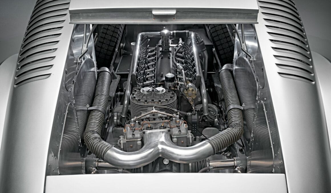C’était au profit d’un tout nouveau V16 atmosphérique conçu par Cosworth, qui fonctionne en conjonction avec trois moteurs électriques pour une puissance totale de 1.775cv. La Type 52 a également été conçue pour utiliser un V16 central à une époque où ce type de moteur était la spécialité d’Auto Union. Cependant, c’est là que s’arrêtent les similitudes avec l’unité du tourbillon. Selon les dossiers, le plan était d’utiliser un V16 suralimenté de 4,4 litres de 600cv, une puissance qui, selon les ingénieurs, sera suffisante pour la vitesse de pointe visée de 250km/h, la carrosserie ayant été conçue pour cela… Cette expression “extrêmement efficace” en termes d’aérodynamisme était le leitmotiv de l ’équipe conjointe de Crosthwaite & Gardiner et des ingénieurs d’Audi en charge du projet relancé a opté pour une approche différente. Ils ont choisi un moteur V16 suralimenté de 6,0 litres, l’avantage du plus gros moteur étant sa puissance nettement améliorée de 512cv,…