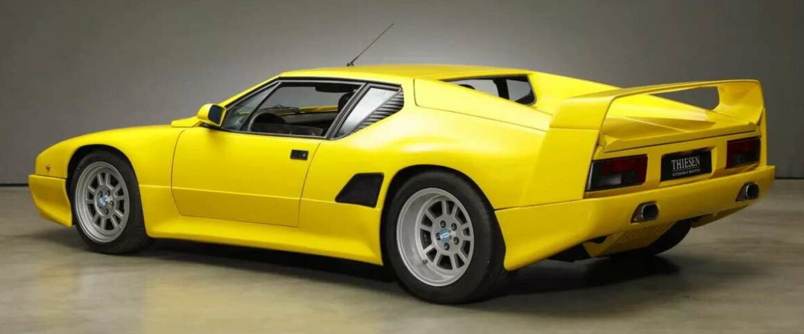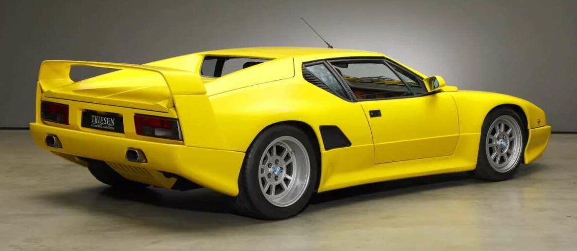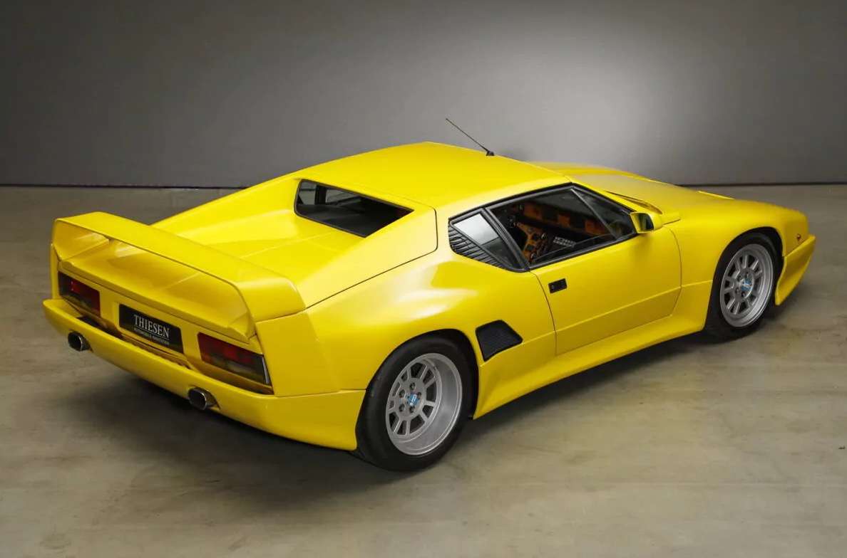 La DeTomaso Pantera Si développée par Marcello Gandini, fut une consécration de l’arnaque, elle a été présentée au public lors du salon de l’automobile de Turin en 1990. En incluant les prototypes de crash-test (2) et les véhicules de développement (2) , seuls 41 exemplaires ont été construits jusqu’en 1993. Moins les quatre Pavesi Targa, des 37, seuls 34 SI coupé ont été produits. Selon les registres de production disponibles, cette Pantera Si jaune a été livrée en Italie en 1991 via le “Garage Italya”. En 2002, la voiture a été vendue à un Suisse et en 2006, elle a changé de mains pour un Suédois. Depuis 2018, la voiture est basée en Allemagne (propriétaire désirant rester inconnu). Les doc’s d’usine, dont des faux pour faciliter l’immatriculation, ont été livrés “d’usine”….