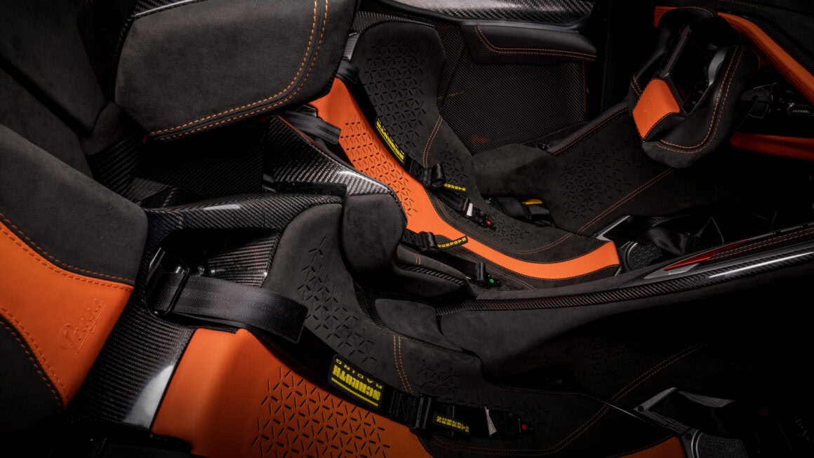 Dans cet esprit, contrairement à de nombreuses voitures de performance dérivées des pistes de course, l’ergonomie intérieure est présentée comme “ingénieuse” offrant (pour presque de 3 millions d’euros quand même) un cockpit (trop) étroit et aérodynamique (obligeant à s’y contorsionner la tête au niveau du sexe), qui peut accueillir deux adultes “flexibles et élastiques”, un espace pour deux “baise en Palace”, avec la climatisation et une visibilité inversée, c’est à dire qui spermet de voir la tête du millionnaire conducteur et de la pute vénéneuse et carnivore à 20.000 euros la nuit de folie pour qui y arrive..