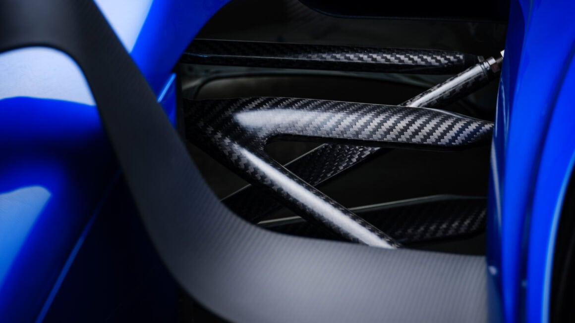 Pareil pour le cockpit aérodynamique dérivé de la course, donc nécessairement étroit mais astucieusement conçu pour accueillir parfaitement deux grands nains “dans l’inconfort d’une position de course”... Les portes s’ouvrent en pivotant pour donner accès au cockpit par-dessus la carrosserie, avec des marches intégrées dans les repose-pieds pour permettre au conducteur et au passager de se mettre en position renversée sans avoir à monter sur les sièges. De plus, le volant est amovible pour faciliter l’entrée et la sortie. La position de conduite étant adaptée grâce à une colonne de direction et un pédalier réglables….