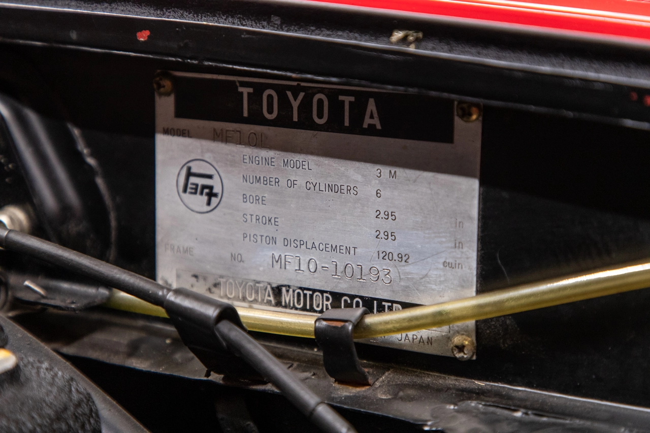 La voiture aurait été achetée par Toyota Switzerland AG au début des années 1980 et utilisée à des fins promotionnelles avant de subir une rénovation en 1993 qui comprenait une repeinture dans sa teinte originale rouge solaire. Il a résidé dans la collection Emil Frey à Safenwil pendant environ 30 ans, subissant une rénovation supplémentaire en 2014 qui comprenait une reconstruction et un suralésage du six cylindres en ligne à DACT de 1 988 cc, un rafraîchissement de l’intérieur en vinyle noir et des révisions des systèmes de freinage et de suspension.