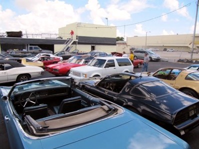 Pour les lecteurs qui considèrent la Floride du Sud comme une combinaison de clinquant, de prestige et de gangsters (la série télévisée américaine Miami Vice y fut pour beaucoup), les bâtiments de Ted Vernon, qui étaient à ses débuts d’un rose bonbon extraordinaire avant de devenir blanc et noir… et qui abritent “la collection” (tout est à vendre)d’une rare débilité (sic !) de Ted…, alimenteront leurs convictions et considérations…, car la vue de cet amoncellement de bagnoles souvent d’un kitch et d’une pitrerie toute américaine, peut parfois blesser l’œil pour rappeler qu’acheter et revendre des voitures n’a pas qu’un côté prestigieux et glorieux…