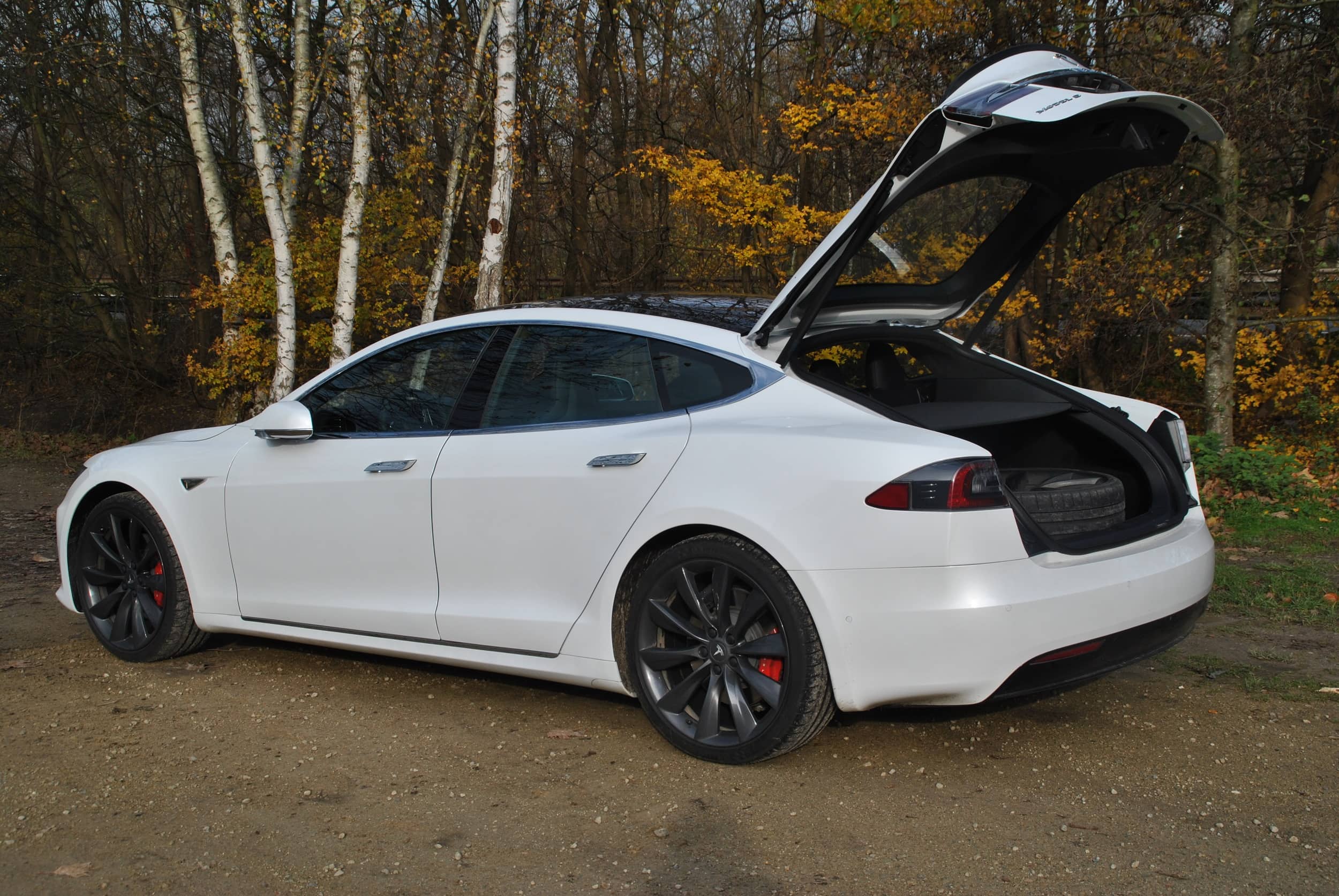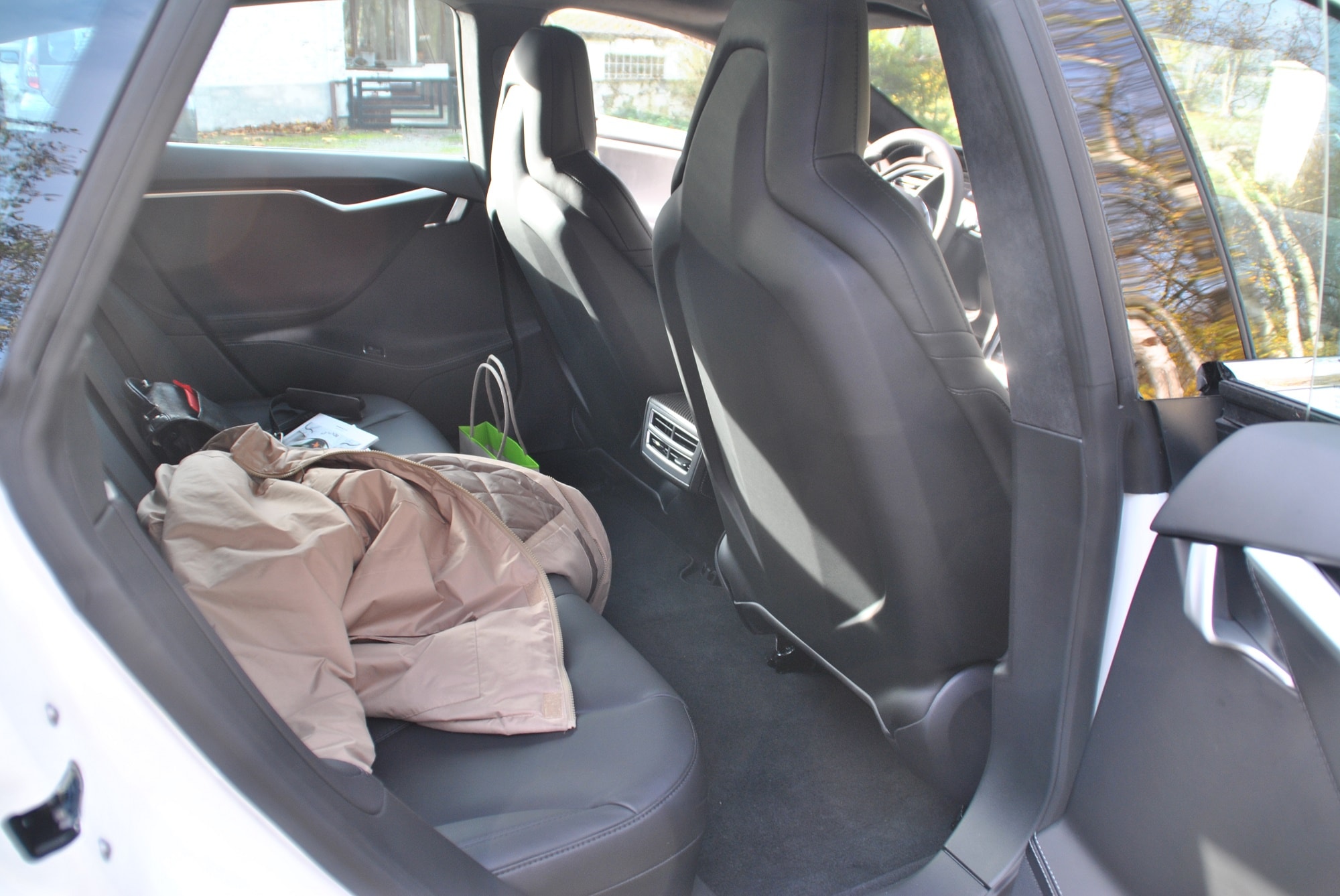 En attendant, voyons ce dont une Tesla Model S P90D a « dans le ventre » ou plutôt dans ses batteries. Le « Model S », c’est une grande berline de près de 5 m de long et pas loin de 2 m de large, pouvant accueillir très confortablement 5 adultes sans oublier deux sièges d’appoint pour des enfants dans le coffre arrière, installés le dos à la route. Avec en outre un empattement de 2,96 m, c’est « Byzance » à l’intérieur, deux coffres ont ainsi pu être aménagés , l’un à l’avant de plus d’une centaine de litres alors que la malle arrière peut voir son volume passer de 750 à 1650 litres en rabattant la banquette arrière mais sans former un plancher parfaitement plat. Avec 540 kg de batteries embarquées, logées sous le plancher en aluminium, pas étonnant dès lors que le poids en ordre de marche de cette berline imposante mais très élégante approche la barre des 2.300 kg.