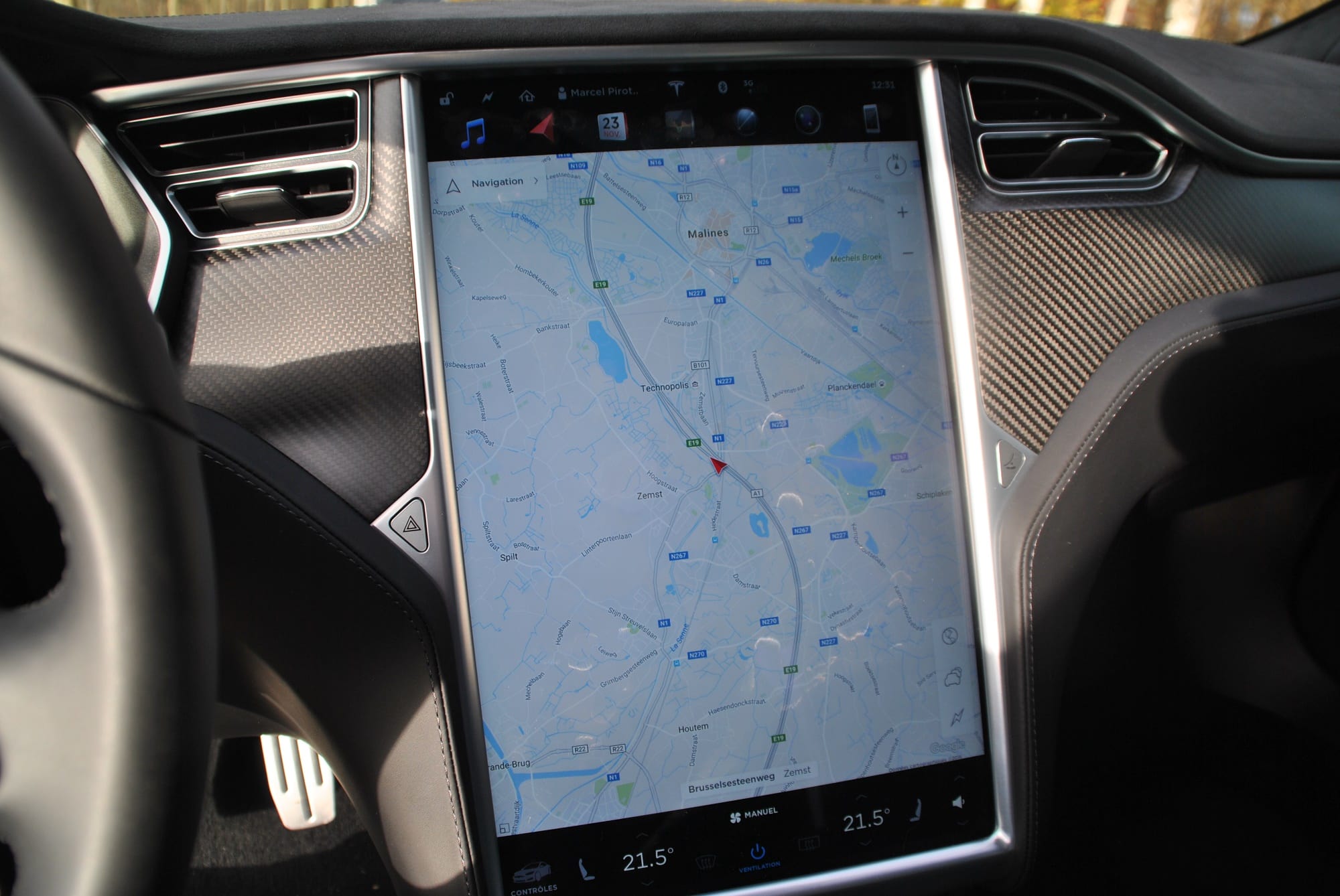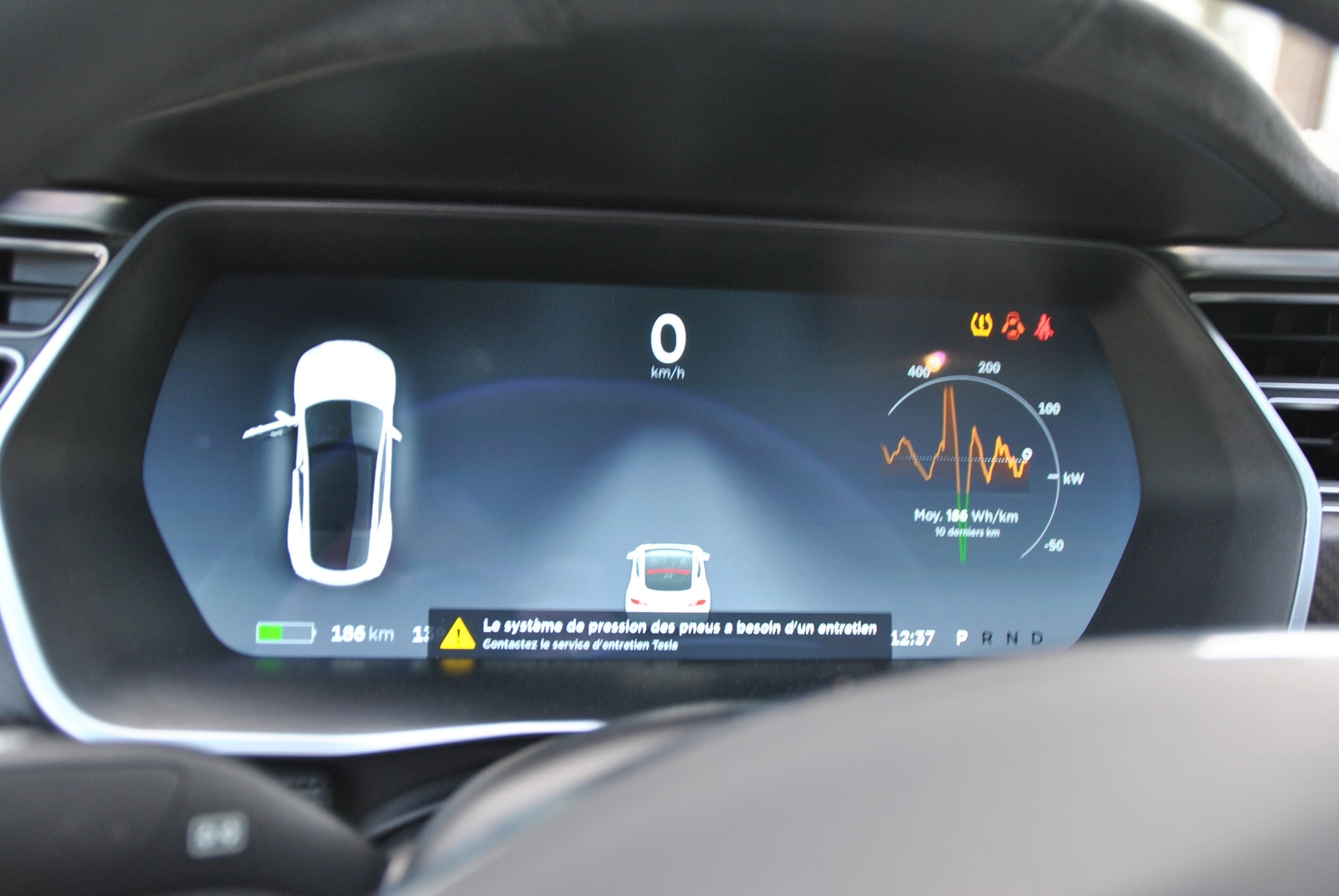 Quoi qu’il en soit, conduire pendant quelques jours une P90D, c’est une expérience à recommander. Avec une répartition très équitable des masses, un centre de gravité placé très bas, une suspension pneumatique qui abaisse la voiture sur autoroute ainsi que des voies très larges, voilà une voiture qui vire bien à plat et qui se caractérise par une tenue de cap extraordinaire sans oublier un confort « royal » et l’absence de bruit mécanique, on pénètre dans un tout autre monde automobile que dis-je dans une troisième dimension. Bien installé, bonne visibilité panoramique, on « déguste » cet habitacle où il n’y a plus que deux boutons traditionnels tout en se focalisant sur cet écran géant qui vous fournit tous les renseignements désirés en activant toutes les commandes…, mais avec un œil permanent sur une petite fenêtre au tableau de bord indiquant l’autonomie restante, vieux « réflexe » terrien d’un automobiliste d’un autre âge, biberonné au moteur thermique.