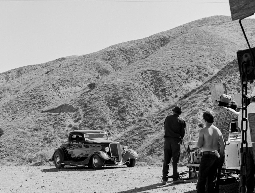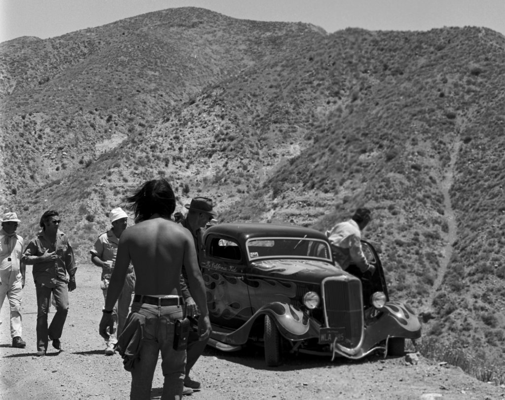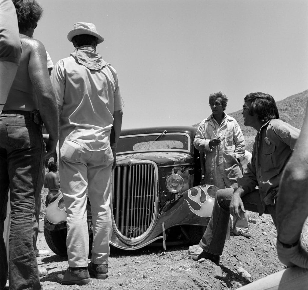 La bande-son pour le moteur du Coupé “The California Kid” provenait du rugissement guttural d’une puissante Corvette 7 litres. Remarquez que le Rod de “The California Kid” se présente comme disposant d’une boite manuelle 4 rapports alors qu’en réalité il s’agissait d’une boite automatique. Des tuyaux latéraux d’échappement avaient également été boulonnés en dessous des marchepieds pour le film (UUUghhh !)… Ils étaient faux, juste pour le look type Seventies… La “nerf-bar” arrière bien connue installée par Pete Chapouris a été supprimée pour le film et remplacée par un moche pare-chocs en tubes carrés pour que la scène finale ne détruise pas le beau pt’tit cul du Hot-Rod que vient taper la bagnole du Shériff…. Que du Cinéma !