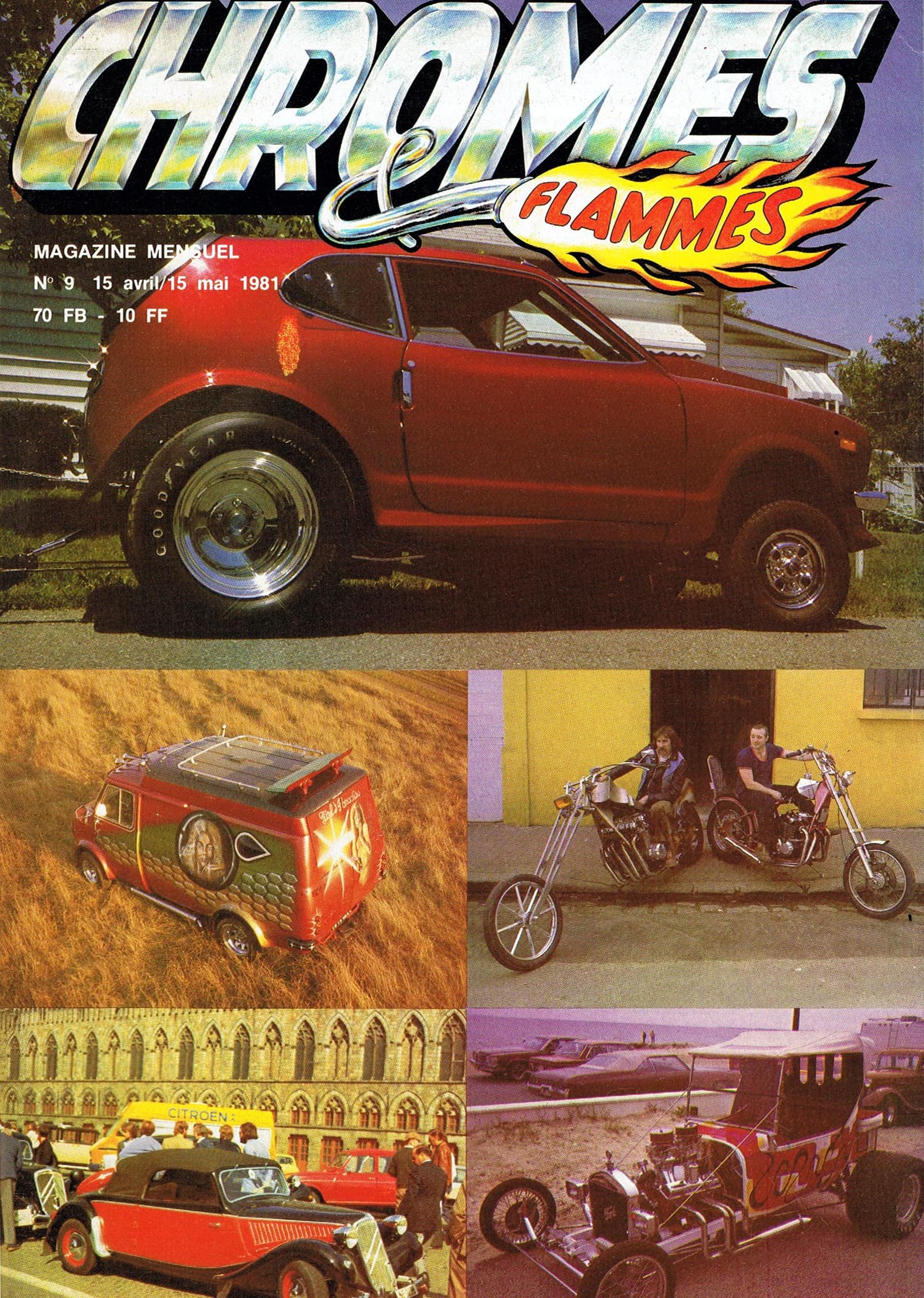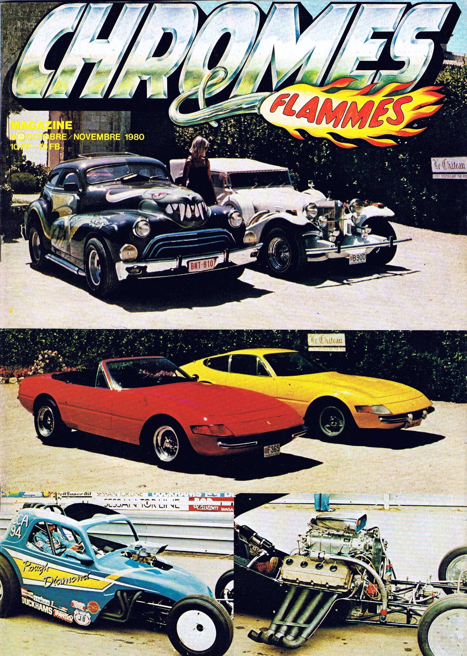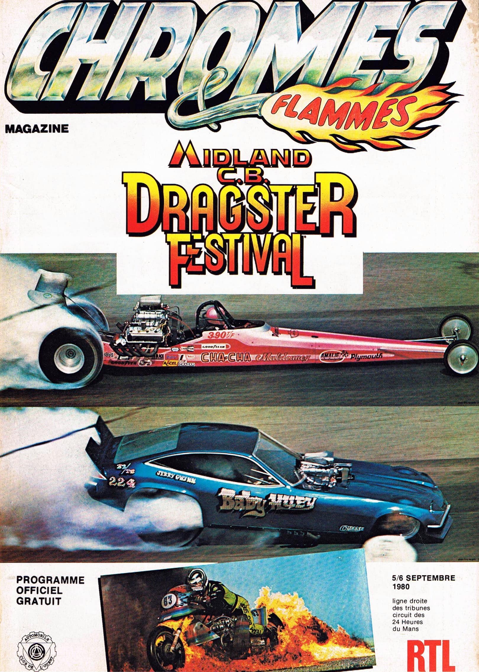 Du coup je roulais avec l’un d’eux quotidiennement et, de fil en aiguille, j’ai eu l’idée d’un magazine de Custom-Cars et de Hot-Rods ainsi que de Dragsters…, ce qui m’a permis de créer la première course de Dragster en France sur le circuit des 24h du Mans ET simultanément le magazine Chromes & Flammes, première mouture, que j’ai ensuite dupliqué en 5 versions/éditions mensuelles publiées dans toute l’Europe et aussi un peu aux USA et au Canada…