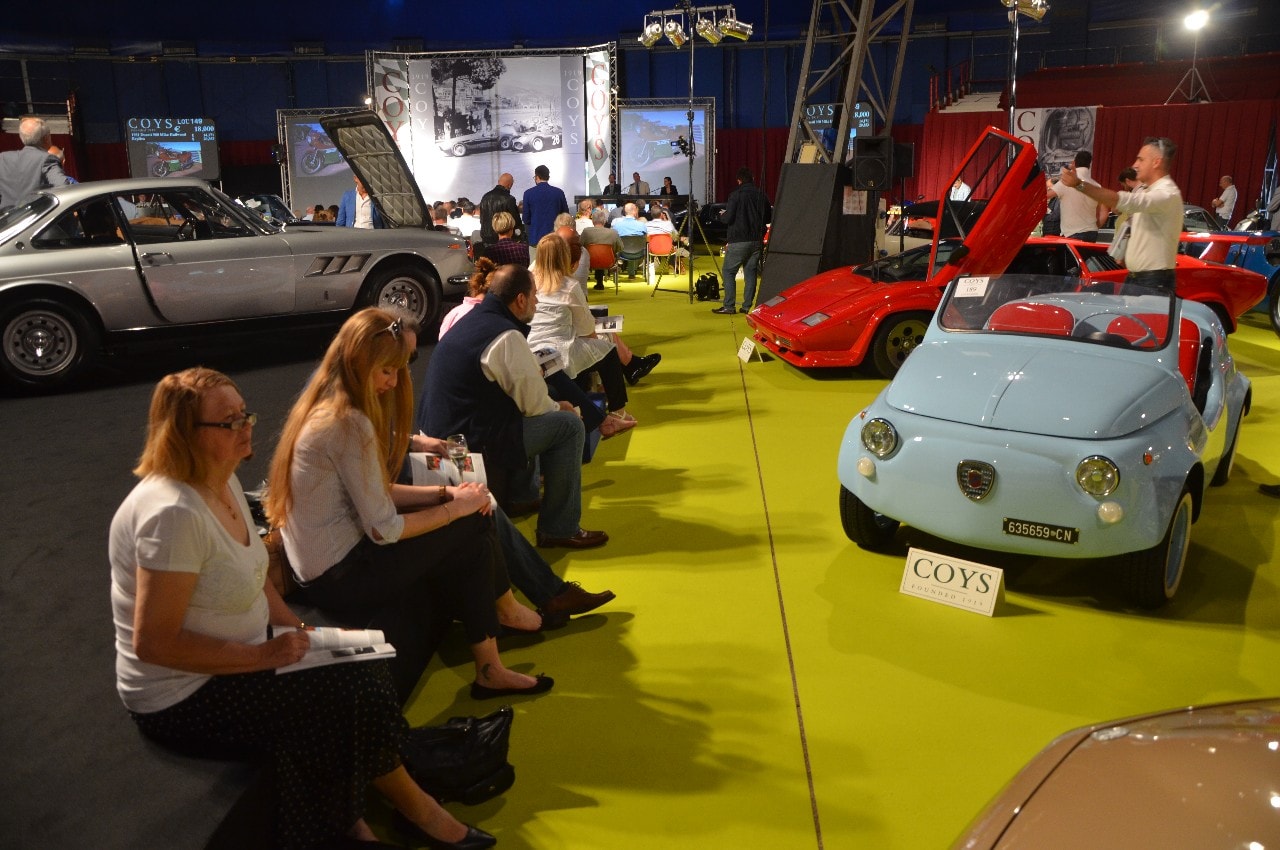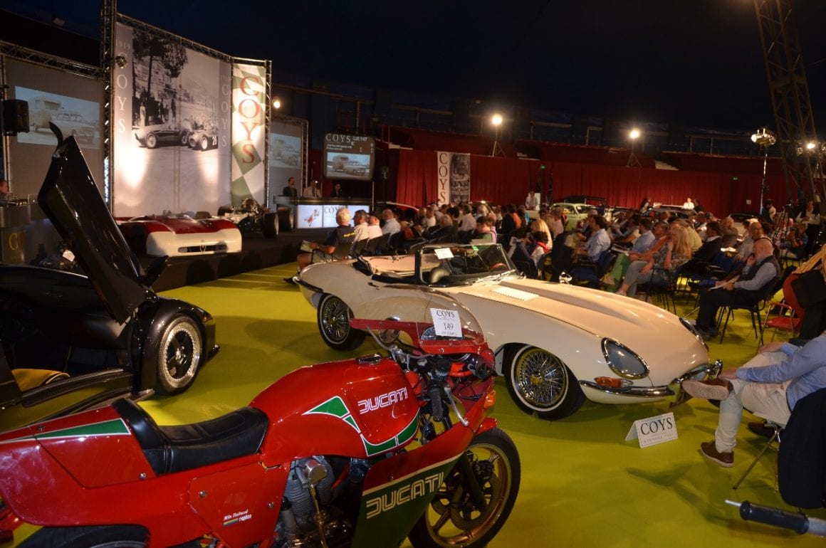 En 2016, le 14 mai, un samedi, Coys remet le couvert, c’est une matinale : montage dans la nuit précédente, finitions au petit-matin, exposition d’une centaine d’automobiles de collection dès 10h00… Vente à 11h00… Clôture à 14h00… Démontage dès 16h30… Disparition générale dans la nuit suivante…