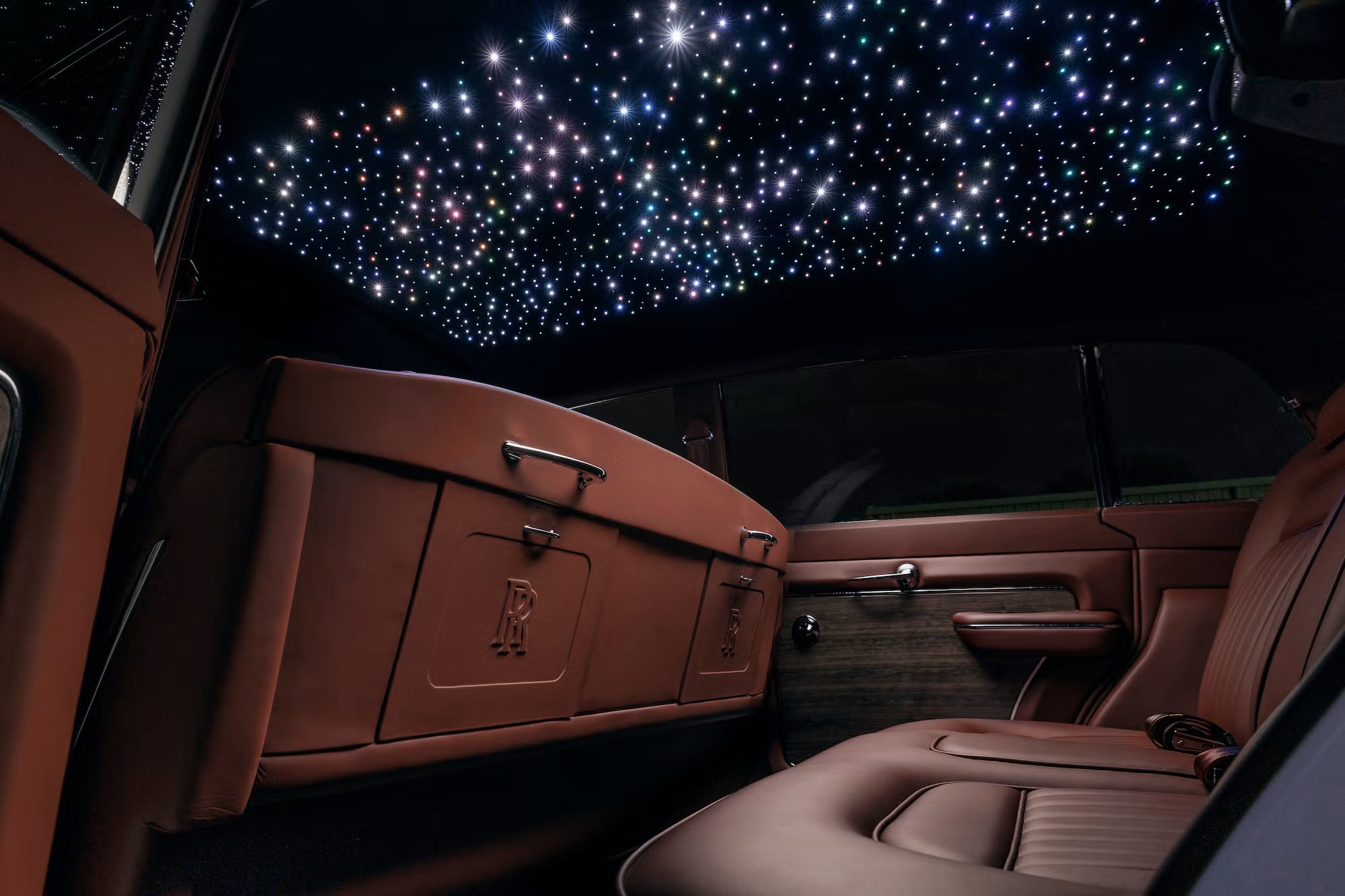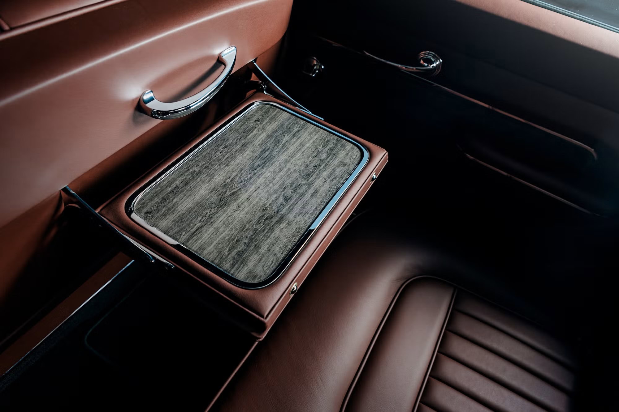 Les planchers ont même été modifiés pour permettre plus d’espace et de confort pour les passagers. Chaque “chose” semble bien adaptée à cette “Rolls-Trumpy-Paramout”, ce qui est une norme difficile à respecter. Il y a même 1000 LED cousus dans la garniture de toit, car vous ne pouvez tout simplement pas avoir une Rolls sans un plafond étoilé de nos jours… Bien que ce ne soit pas la première fois que Ringbrothers s’éloigne des Muscle-cars, il est rafraîchissant de voir leurs talents appliqués à un autre segment. La Silver Cloud II n’est pas le produit le plus recherché que Rolls-Royce ait construit.