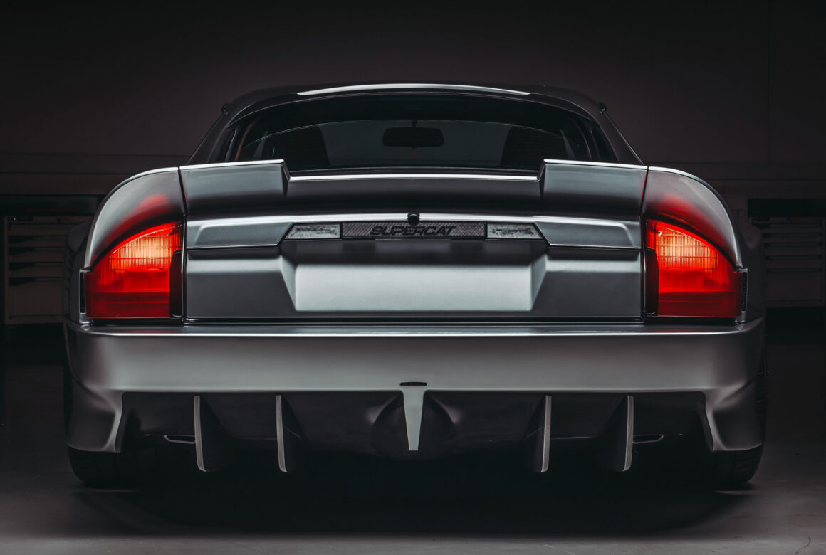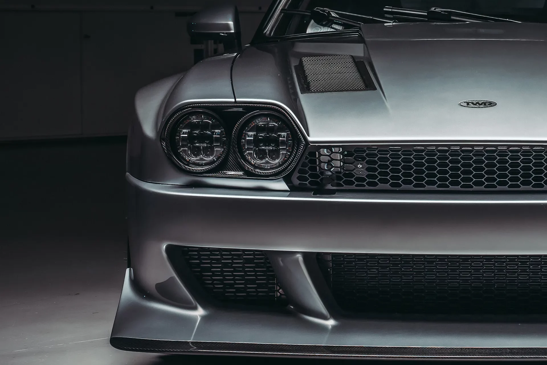 Elle s’adapte ainsi à la forte augmentation de la largeur de voie par rapport à la XJ-S standard, ainsi que le moteur, la transmission et le différentiel à glissement limité. Il s’agit d’une approche similaire à celle utilisée par les constructeurs de voitures de course tels qu’AMG pour transformer un modèle GT de route en voiture de course GT3. Le processus fournit non seulement un châssis rigide sur lequel la suspension peut travailler, mais permet également à TWR de couper la plupart des panneaux en acier d’origine et de les remplacer par des pièces en fibre de carbone qui donnent à la voiture sa présence spectaculaire dans la rue et contribuent à une réduction de poids de 800kgs par rapport à la XJ-S standard. La carrosserie de la TWR Supercat est signée Khyzyl Saleem, un graphiste dont les rendus numériques de voitures personnalisées ont attiré un nombre considérable d’abonnés sur les réseaux asociaux.