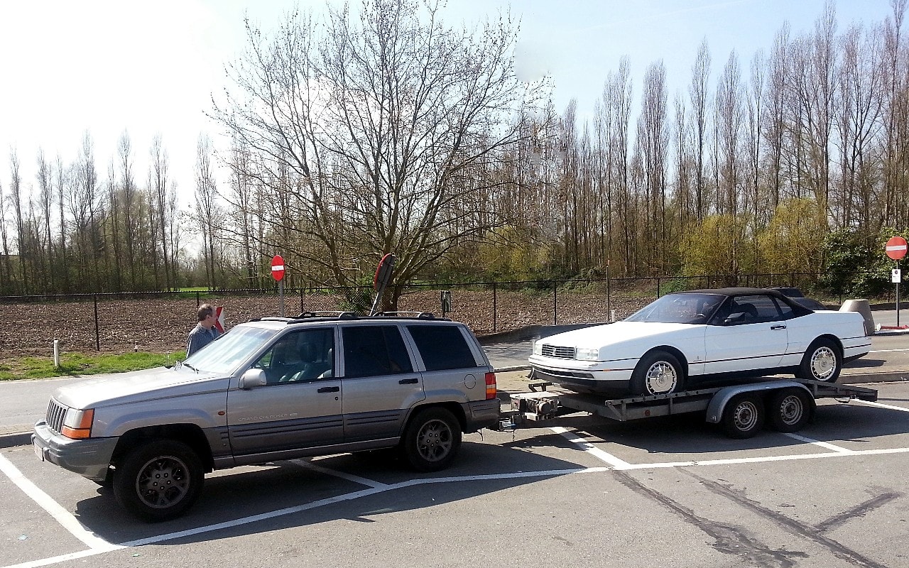 Oh joie…, dans leur terrain trône une Cadillac Allanté blanche, intérieur gris, apparemment comme neuve…, exactement comme dans l’annonce !