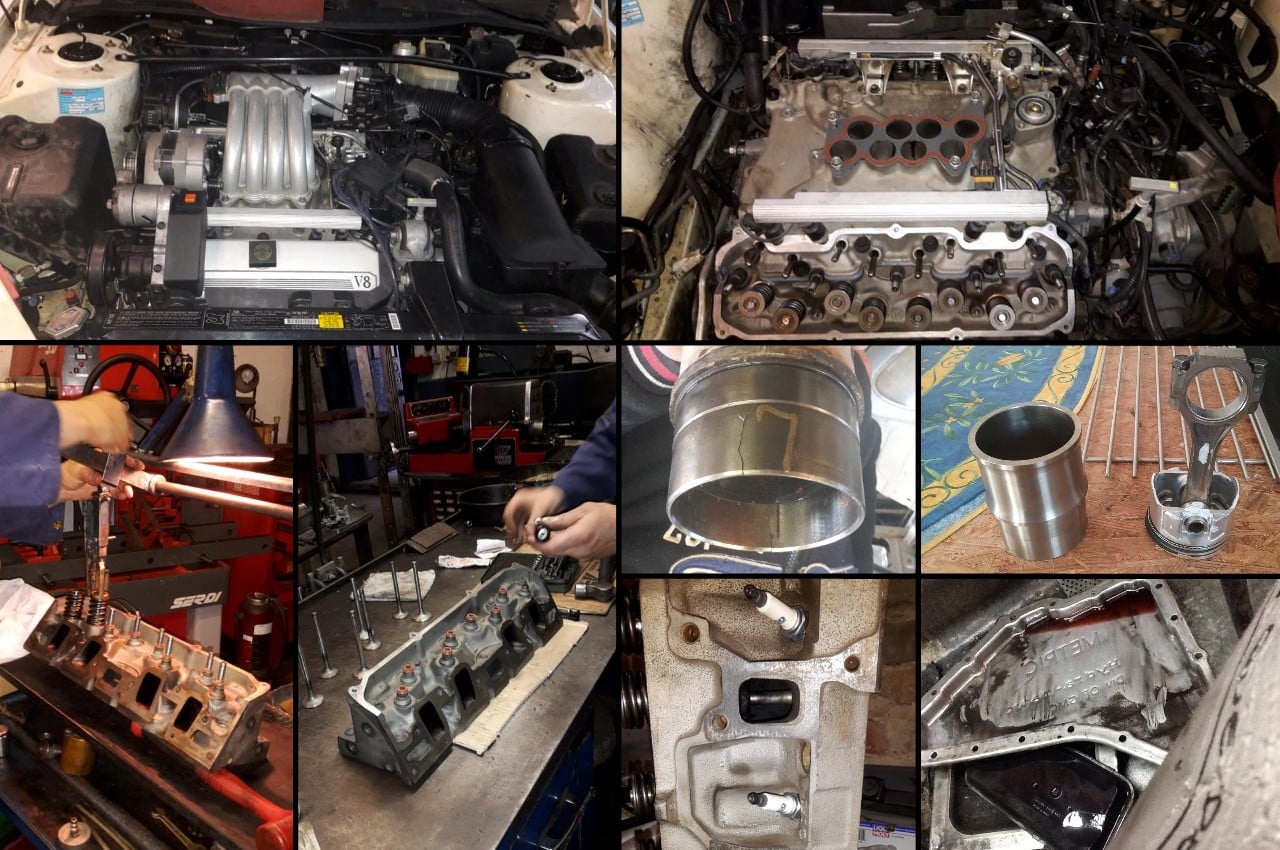 Ci-dessous, patchwork de photos de la réfection mécanique de l’Allanté blanche