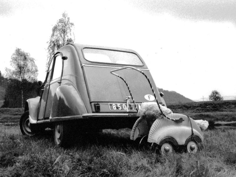 On mesure la popularité de la 2 CV à la variété des surnoms dont elle est, ou a été, affublée en France et dans le monde entier. Chez nous, elle est le plus souvent connue sous son doux nom de “Deux-pattes”, de “Deuche”, “Dedeuche”. On l’a également qualifiée de “Quatre-roues-sous-un-parapluie” voire de “Parapluie-à-quatre-roues”. On l’a même désignée “L’éternelle”, “La trépigneuse” (terme employé juste après-guerre pour marquer le fait que ses roues s’agitent beaucoup dans les ailes). Une simple recherche sur Internet permet en outre de découvrir des sobriquets rigolos tels que “Vilain petit canard”, “Cocorico” (parce qu’elle reproduit le cri du coq quand elle démarre) ou “saute-congères” (il est vrai qu’elle est aussi très à l’aise sur la neige). A l’étranger, elle suscite aussi l’inspiration. Les Allemands et les Néerlandais surnomment ainsi la 2 CV “le Canard” tandis qu’en Flandre, on l’appelle “Petite chèvre” (le bruit du moteur au démarrage sans doute). Elle est le “Chameau d’acier” en Afrique du Nord, la “Two ci-vi” sur le continent nord américain et en Finlande, on parle de “Rättisitikka”, traduisez “la voiture du chiffonnier”.