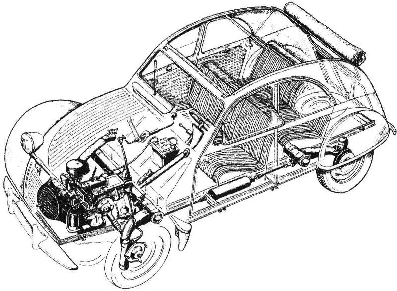 Age : Née “officiellement” le jeudi 7 octobre 1948 au salon de Paris suite à une copulation de Pierre Boulanger en 1936… suivie d’une lente fécondation en 1937… Lieux de naissance : Bureau d’études Citroën (à l’époque situé rue du Théâtre à Paris 15ième)… Centre d’essais de La Ferté Vidame (Eure-et-Loire)… Usine de Levallois (située au 54 quai Michelet, détruite en 1988). Caractéristiques d’origine : Moteur bicylindre à plat refroidit par air de 375 cm3 qui permet d’atteindre 60 km/h, boîte de vitesses à trois rapports + une surmultipliée, suspension à grand débattement, essuie-glace actionné par le câble du compteur de vitesses ! Notez que la 2 CV était économique et écologique avant l’heure puisque son régime jockey lui permettait de ne consommer que 4 à 5 litres aux 100 km.
