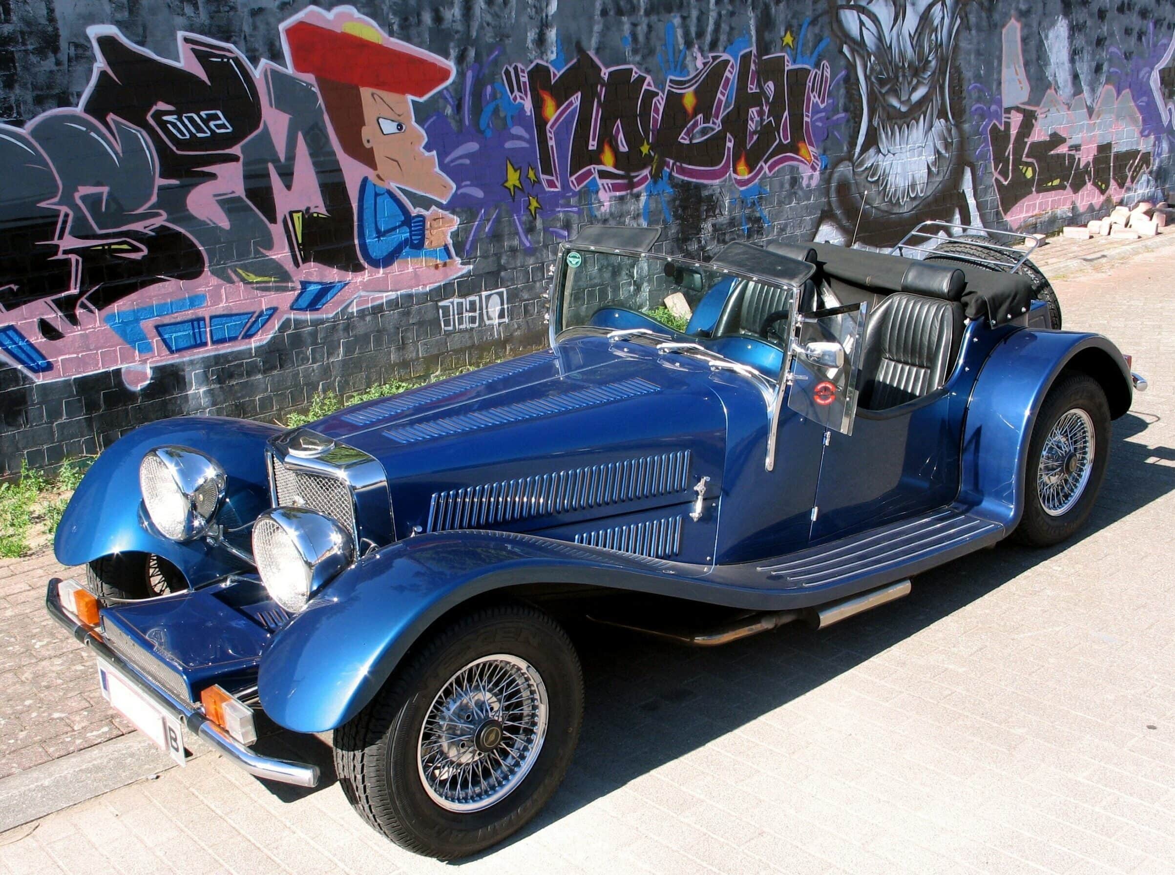 La palette est très large. Parmi elles figure Panther, spécialiste de la “néo-classique” anglaise. En quelques années, entre le milieu des années 50 et la fin des années 60, la possession d’une voiture de collection (en particulier les modèles prestigieux ou sportifs de l’entre-deux guerre) est passé d’un hobby pour garagistes retraités à « ZE » truc à la mode, lorsque les chanteurs pop se sont mis à rouler dans ce type d’autos. Mais les anciennes étant difficilement utilisables au quotidien (problème de confort, de fiabilité, de performances et de prix des pièces), certains astucieux, copiant Brook Stevens et son Excalibur (1964), puis Zagato et sa réplica 1750… (en 1966), se sont ingéniés à les copier, d’où la vogue des “néo-classiques”: un style “ancien”, mais une mécanique moderne. De l’artisan scrupuleux (mais cher) au petit malin qui proposait un kit pour transformer n’importe quelle Cox en Mercedes SSKL ou en Cobra, l’offre était vaste.