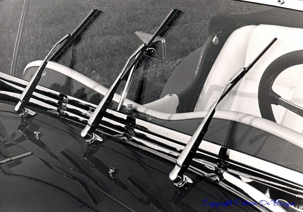 Cette Panther va s’ajouter dans ma boîte à jouets grandeur nature, et va y rester une quinzaine d’année… elle disposait de quelques caractéristiques intéressantes : la direction assistée (pratique pour les manœuvres), la radio d’époque et d’usine, la capote et le couvre-tonneau en mohair noir, le cache en dessous des phares avant (qui sert pour camoufler le radiateur d’huile), les grilles de phares, les jantes 5 boulons en 72 rayons, chromées… et, très important, les deux vitres latérales intactes…