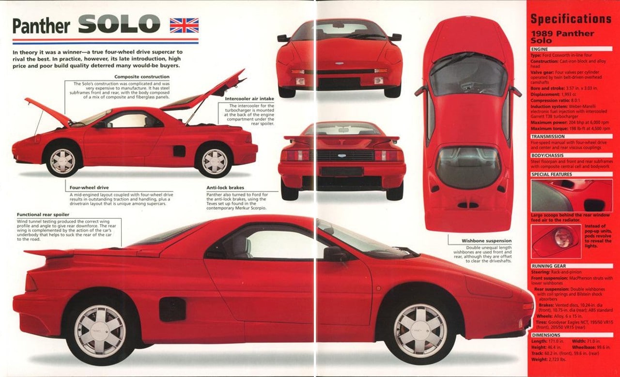 La Solo retourna à la table à dessin afin de s’en distinguer. Pendant des années, elle fut l’Arlésienne de Panther. Elle reçu finalement une mécanique et une transmission intégrale de Sierra RS Cosworth, tandis que Comtec (une filiale de March) s’occupait du châssis. La Solo réapparu en 1989. Ce fut un bide et elle s’effaça au bout de quelques mois (on ne connaît pas le nombre exact de Solo construites, car certains modèles ont eu successivement plusieurs numéros identiques de châssis) !Ssangyong a perdu beaucoup d’argent avec la Solo.