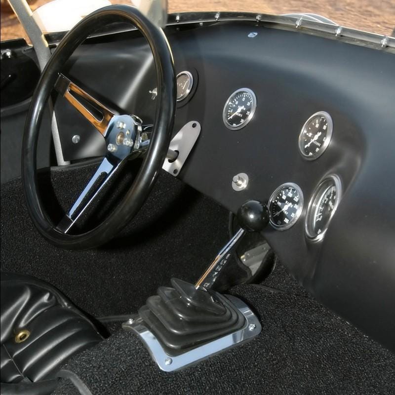 Bémol numéro un…, c’était un Chevrolet V8 5,7L qui remplaçait le 5,3L d’époque sous le capot des “Cheetah Continuation”, cela ne passait pas inaperçu aux yeux des fanatiques et des connaisseurs…, d’autant que la boîte(automatique, de surcroit) se trouvait légèrement avancée par rapport à la configuration originale, le levier de commande se retrouvant quasi contre le tableau de bord (voyez la photo plus loin dans cet article).