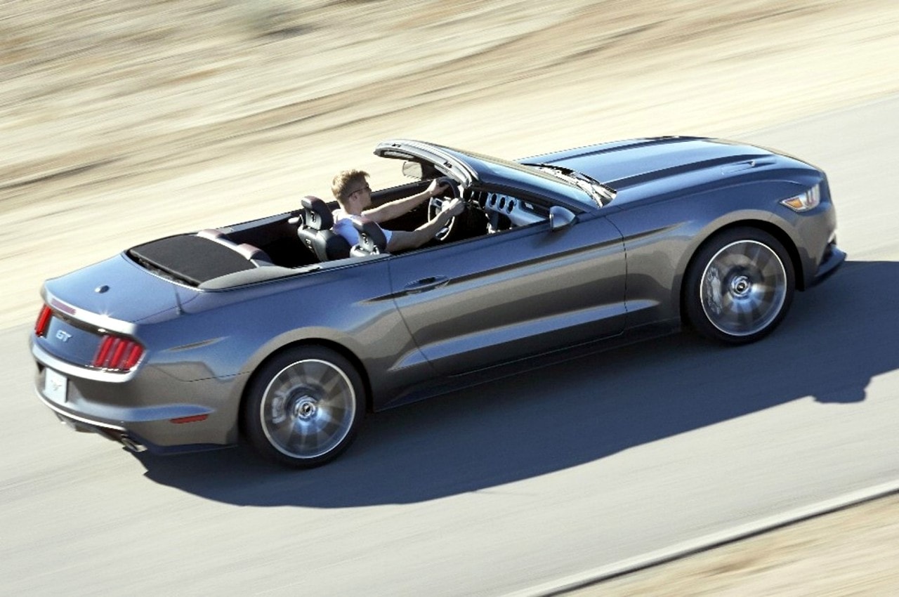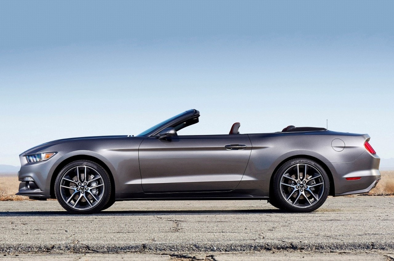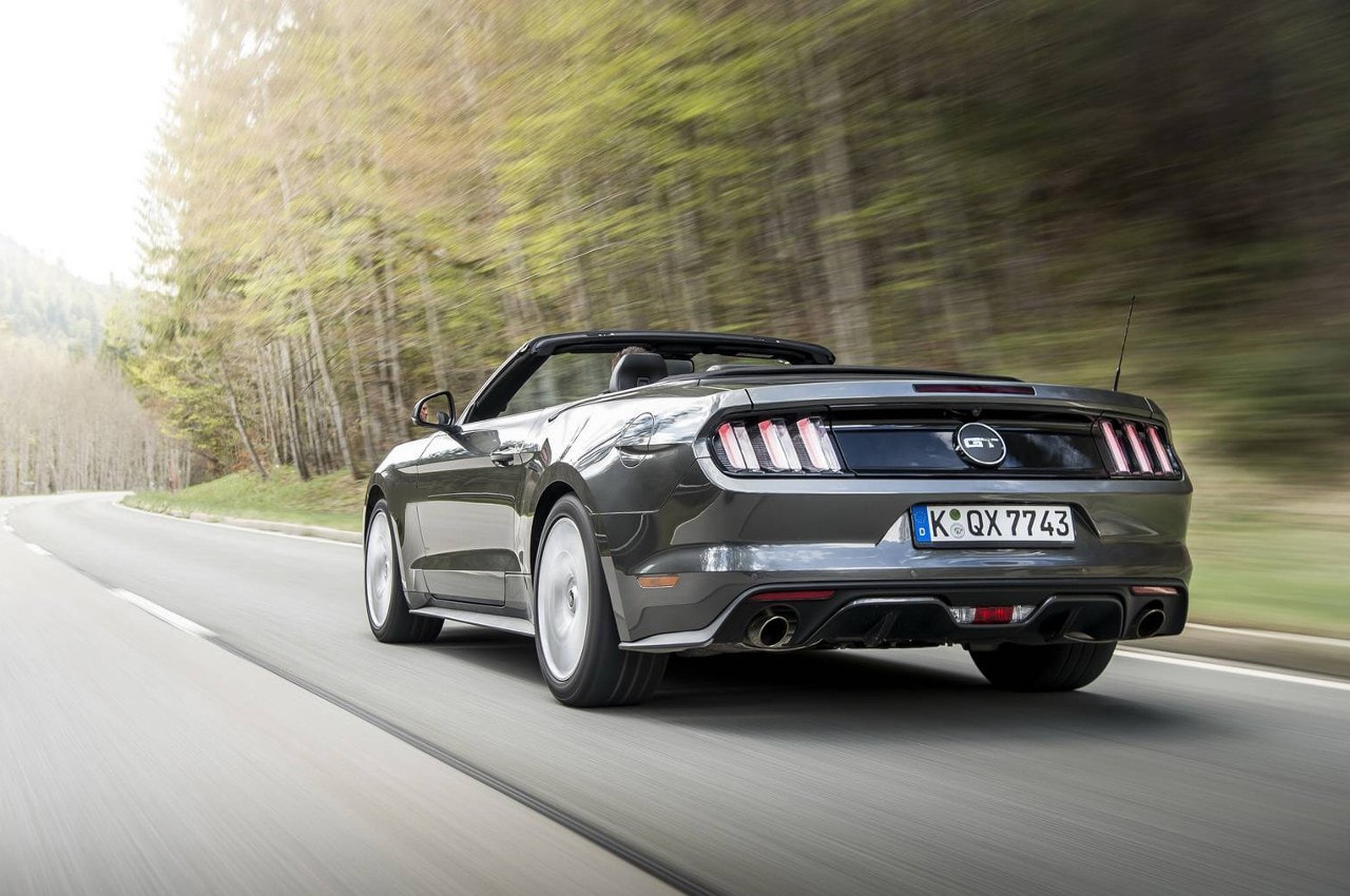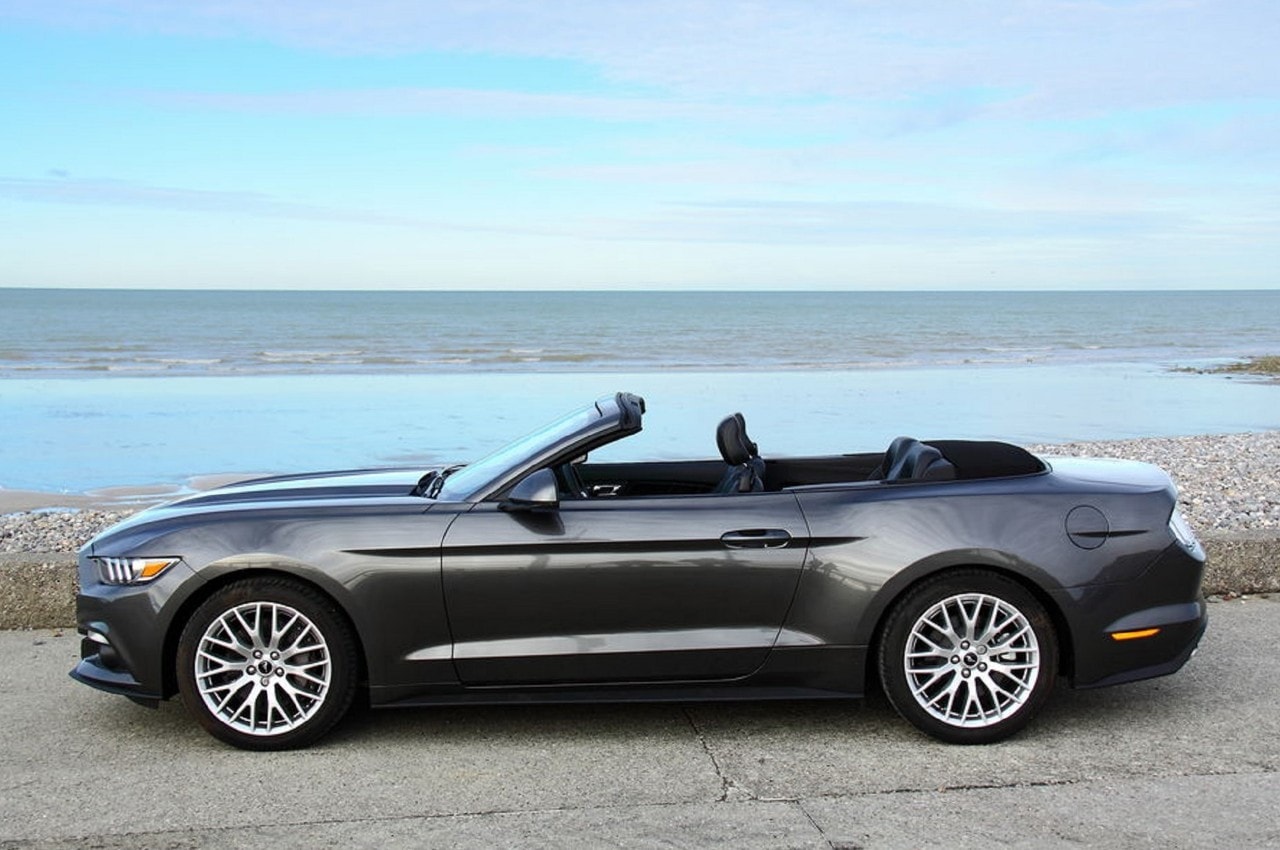 On ne voit pas encore beaucoup de Mustang circuler dans nos rues…, d’où sa rareté mais également son exclusivité renforcée par des lignes pour le moins superbes, qu’elle soit ouverte ou fermée, ses proportions font mouche, ceinture de caisse basse et étirée, les designers n’ont pas raté leur coup…, avec, en prime, un long capot et de brefs rappels stylistiques des anciennes Mustang.