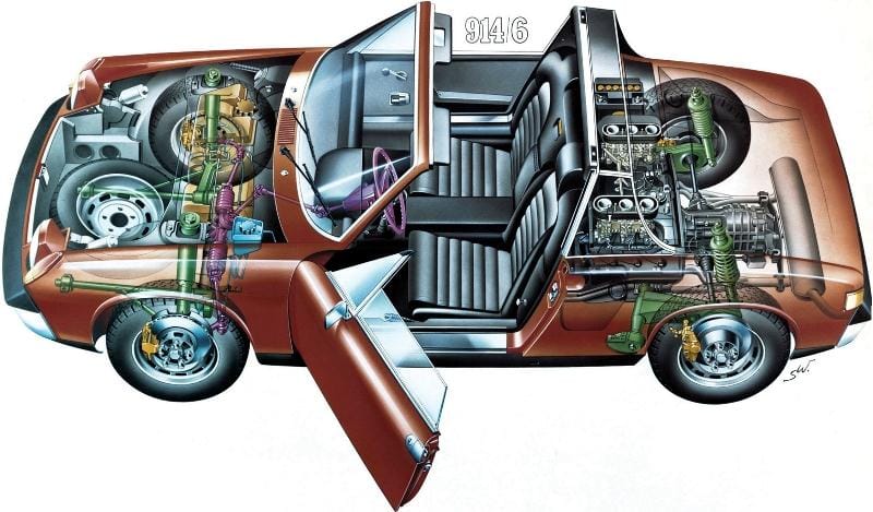 A l’époque, ce modèle à moteur central arrière refroidi par air, six cylindres deux litres Porsche de 110 chevaux sur la 914-6… et quatre cylindres 1,7 l VW de 80 chevaux sur la 914/4 (sa seule concurrente était la Matra à moteur Ford V4 1,7 l de 78 chevaux), se caractérisait par la présence de deux places, de deux coffres, d’un toit amovible avec un arceau du style Targa, mais également par une tenue de route pour le moins stupéfiante, sans oublier une incroyable agilité, de quoi décupler à chaque déplacement un véritable plaisir de conduite.
