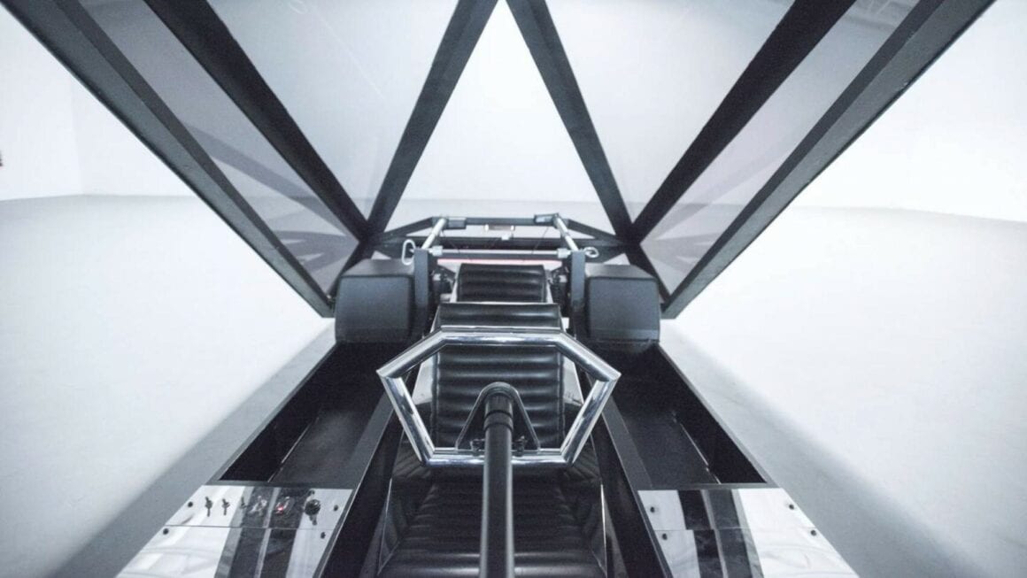 À vrai dire vrai, sans nuance, cela rappelle plus “quelque chose” d’un film de science-fiction, que n’importe quelle voiture conçue par le designer Marcello Gandini. C’est lorsque la capsule en polycarbonate se lève électriquement qu’un frisson d’incrédulité parcours la colonne vertébrale à la vue de la réalité de la chose… Rien des dessous ne correspond à du véritable avant-garde, c’est moins technique qu’un Smartphone basique… Il n’y a d’ailleurs aucune véritable électronique embarquée, tout est fabriqué et monté “à l’ancienne” avec du vieux ré-adapté…