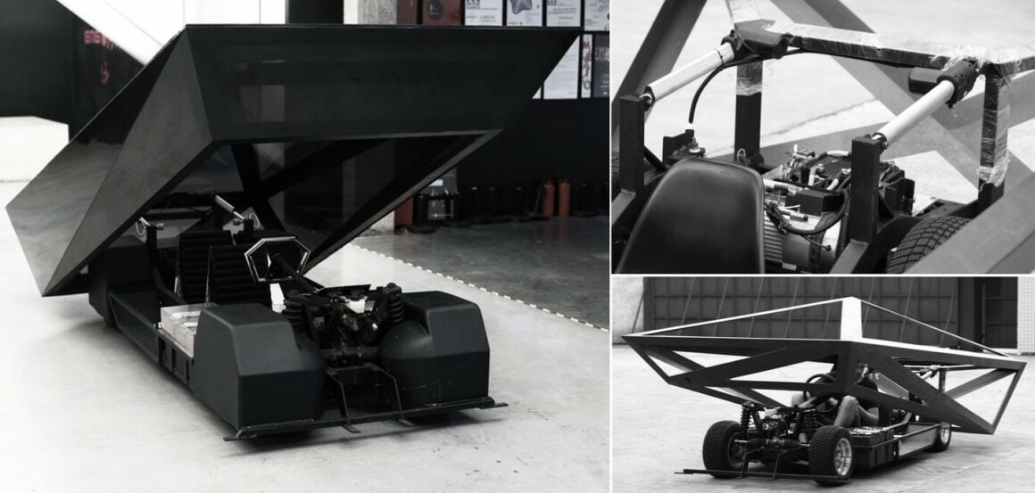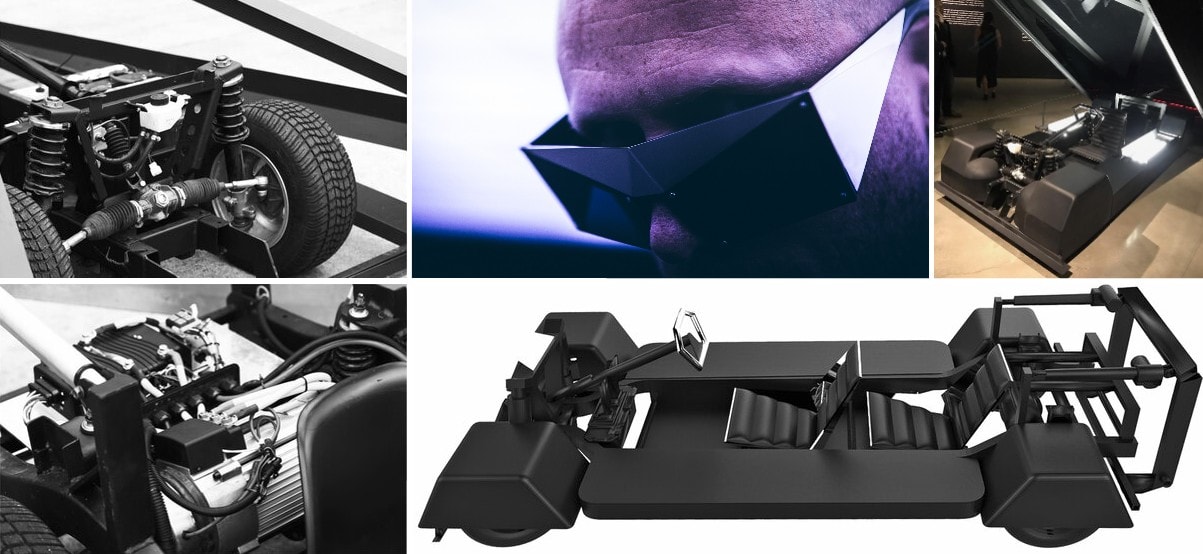La petitesse de l’ensemble et ces gimmicks ridicules démontrent que “la chose” n’a pas été conçue de manière avant-gardiste “à l’électrique”, ni même à l’hybridation, et que le réservoir (un petit bidon de 5L) d’essence, ne permet que des micro-balades en terrain plat et balisé… La réalité est que c’est un simple show-car avant-gardiste à l’ancienne (sic !) avec une carrosserie/capsule façon véhicule d’un futur imaginé… et divers éléments en acier inoxydable poli destinés à contraster avec le reste de la voiture qui a été délibérément gardé brut et fini en revêtement noir.