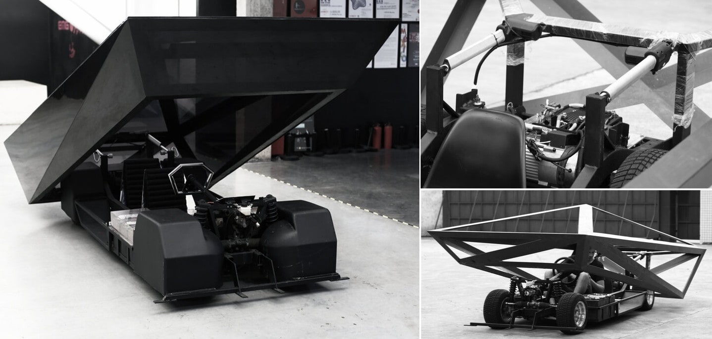 En prétendant avoir utilisé une emblématique Lamborghini Countach (design de Marcello Gandini) comme base, United Nude à été un “pneu” beaucoup trop loin pour capter l’attention des médias, car c’est une structure “maison” assez simpliste qui a été construite (voir la première partie de la Viméo ci-dessus) et à l’arrière de laquelle le prétendu V12 Lambo n’est en réalité qu’un moteur électrique ! (voir photos plus bas).